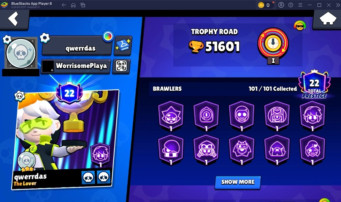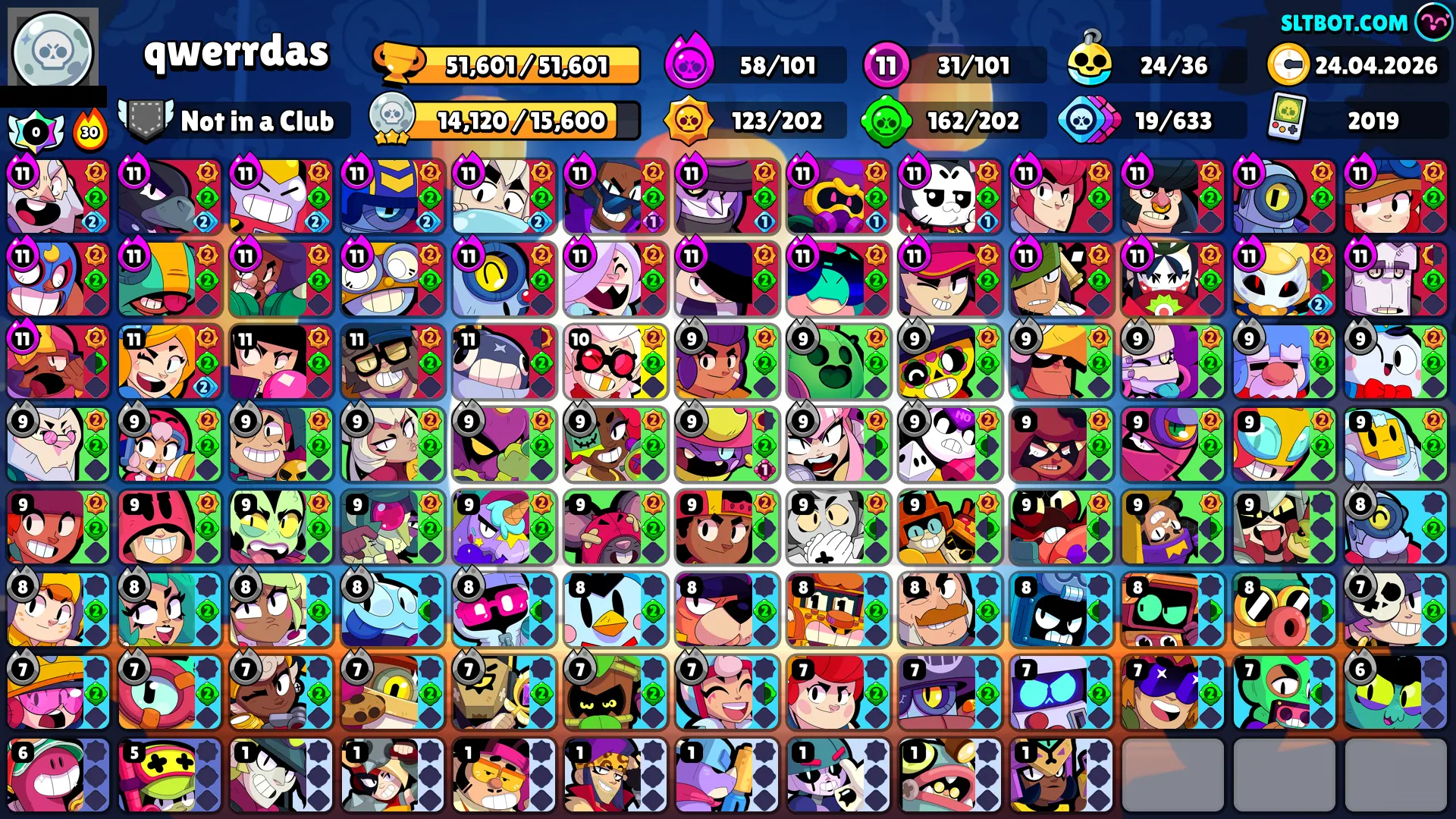 260 SKINS ⭐ 51.600 TROPHY ⭐ 101 BRAWLERS ⭐ 27 HYPERCHARGED ⭐ 31 MAXED BRAWLERS ⭐ 22 PRESTIGE ⭐ 24 BUFFIES ⭐ EGG PAM ⭐ EGG RICO ⭐ CUPID PIPER ⭐ IMPIE COLETTE ⭐ MECHA MORTIS ⭐ LEGENDARY ⭐ 50K