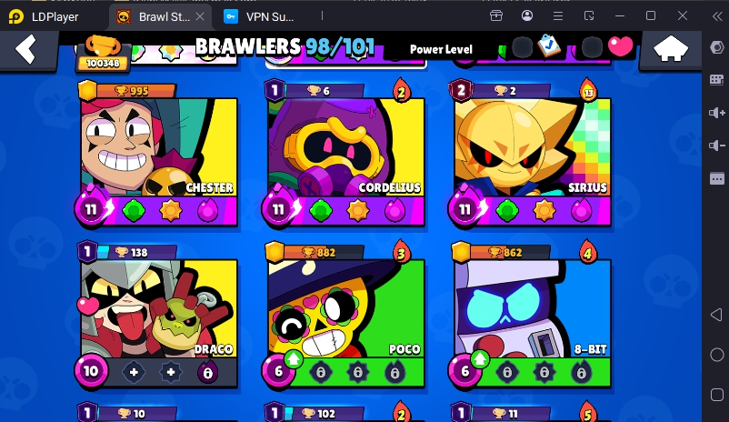 276 SKINS 💯 MASTERS 2025 🧡 100.348 TROPHIES 🏆 98 BRAWLERS 🐼 48 HYPERCHARGED 🩸 74 PRESTIGE 💜 48 MAX BRAWLERS 💛 19 BUFFIES 🔑 DEMON MORTIS 🧡 MANGA KENJI 🧡 CAPTAIN CARL 🧡 IMPIE COLETTE 🧡 WORLD CHAMPION GUS 💯 90K 100K