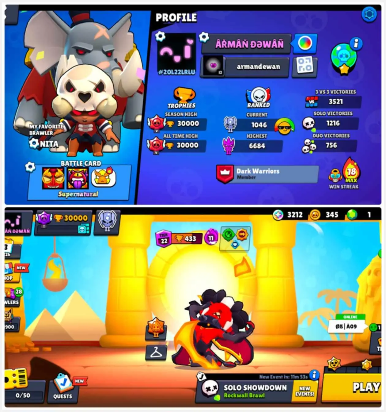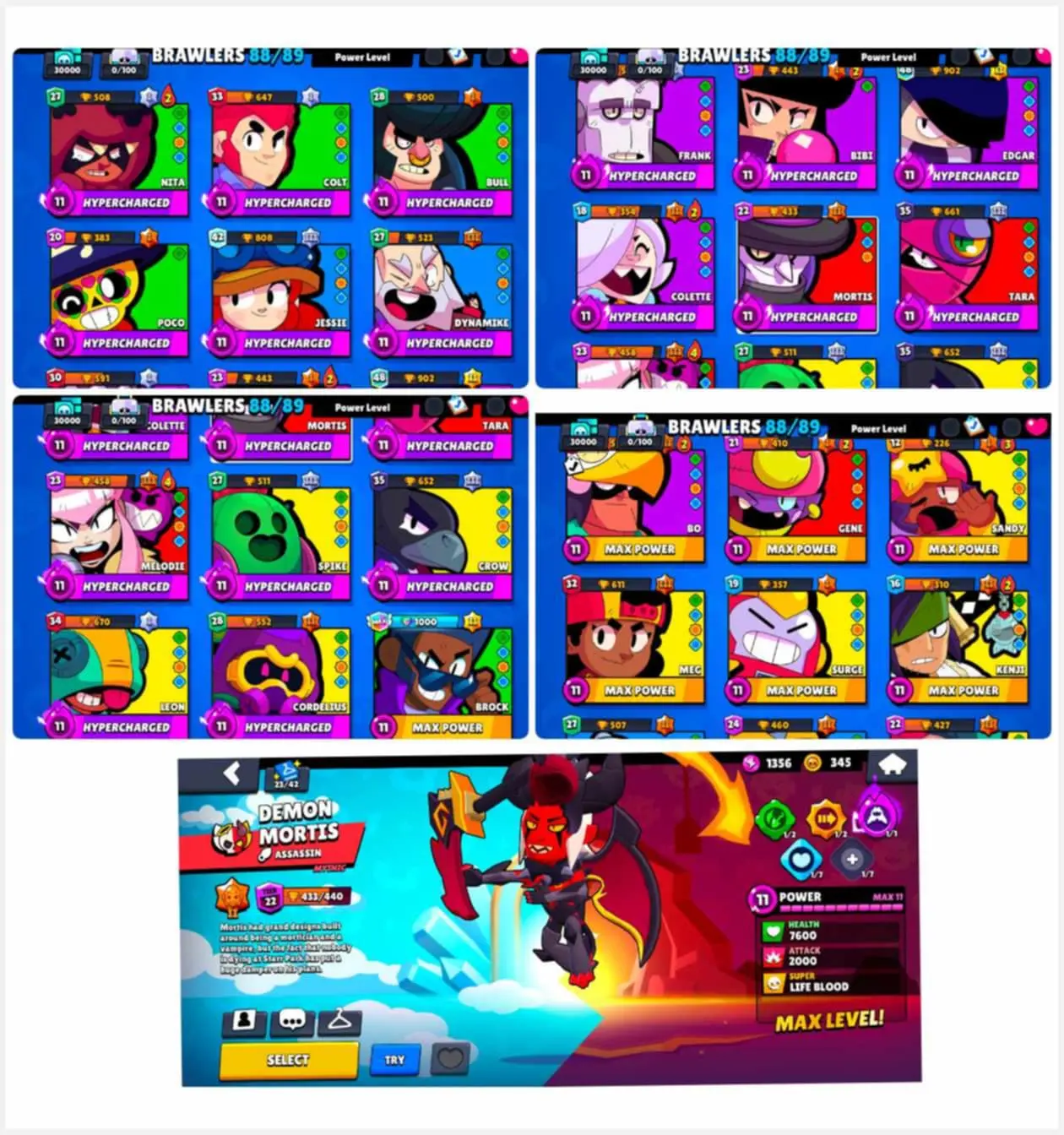 30K TROPHY ACCOUNT 🔥 DEMON MORTIS 💥 WHITE WOLF LEON ⚡ 88 BRAWLER 😍17 HYPER 7 MAX TOTAL 24 MAX ✨ 141 TOTAL SKIN 🎉CHEAP- INSTANT DELIVERY🔥🎁 93 XP 50$