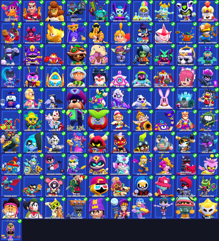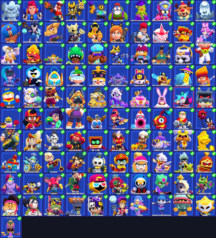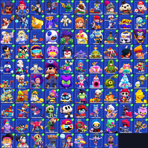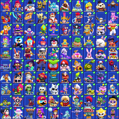 332 SKINS 💯 ACCOUNT CREATED 2019 🧡 54.793 TROPHIES 🏆 100 BRAWLERS 🐼 43 HYPERCHARGED 🩸 11 PRESTIGE 💜 48 MAX BRAWLERS 💛 21 BUFFIES 🔑 TRIXIE COLETTE 🧡 CURSED KENJI 🧡 WHITE WOLF LEON 🧡 CAPTAIN CARL 🧡 OROCHI EDGAR 💯 40K 50K