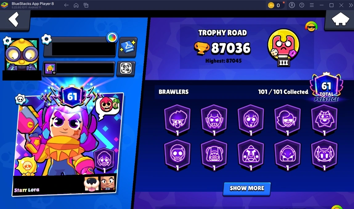 362 SKINS ⭐ 87.000 TROPHY ⭐ 101 BRAWLERS ⭐ 48 HYPERCHARGED ⭐ 55 MAXED BRAWLERS ⭐ 61 PRESTIGE ⭐ 23 BUFFIES ⭐ EGG PAM ⭐ DARK LORD SPIKE ⭐ IMPIE COLETTE ⭐ BANANAS COLT ⭐ DJ POCO ⭐ LEGENDARY ⭐ 80K