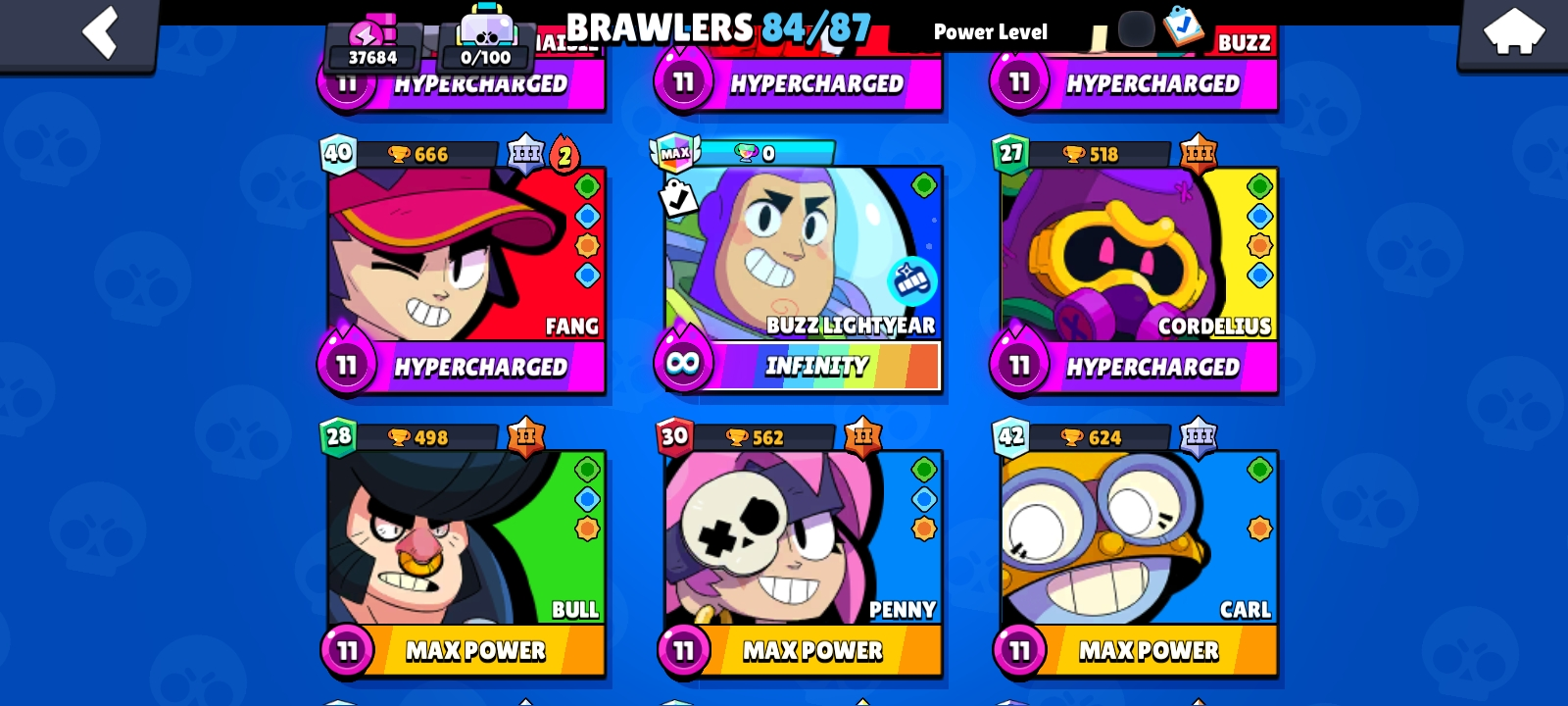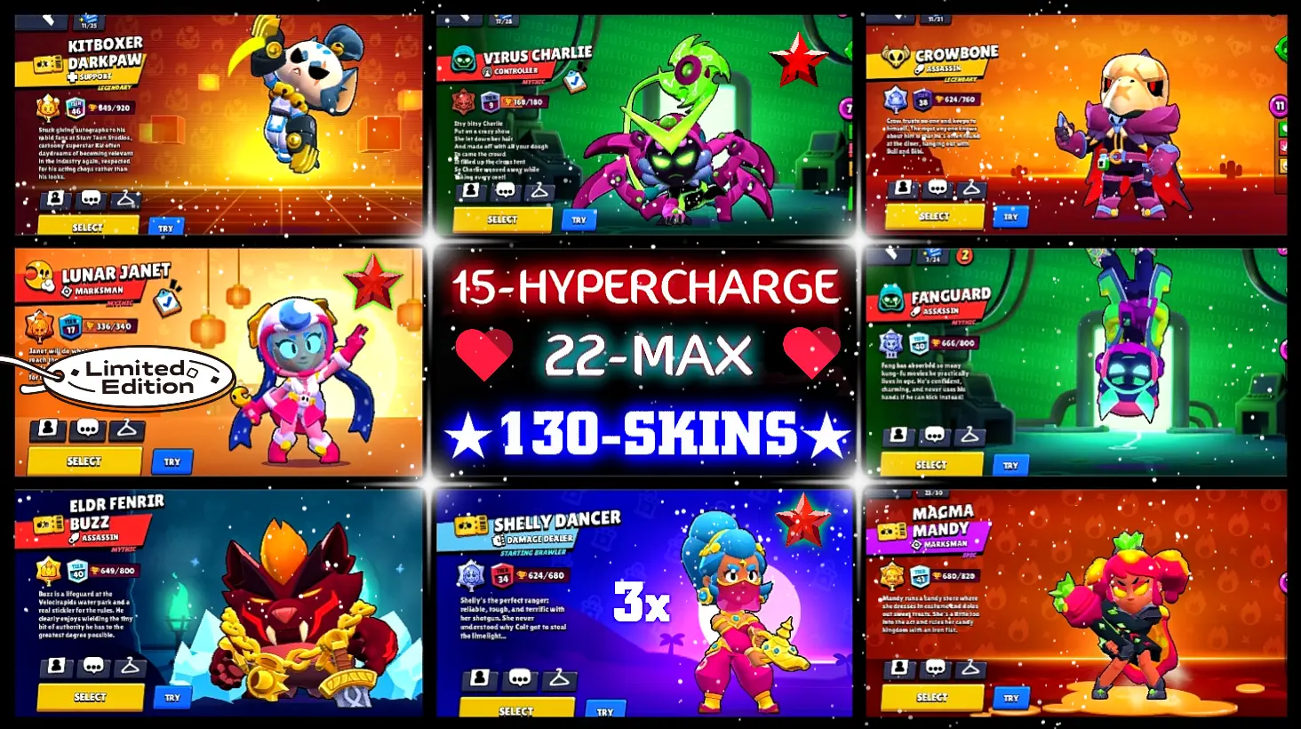 🍁37.000 CUPS> 37-HYPER & MAX✨ 130-AWSM SKINS✅ VIRUS CHARLIE✨ DANCER SHELLY✨ FENRIR BUZZ✨ LUNAR JANET, KIT & MORE❤️✨ SAFE & SECURE ❤️ 84/89 BRAWLERS. ( Leon Spike Surge Fang Legendary Cordelius + 83 more)