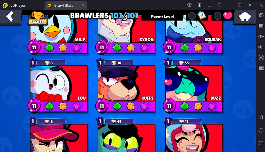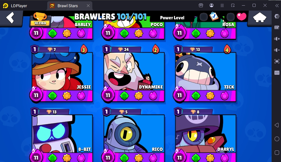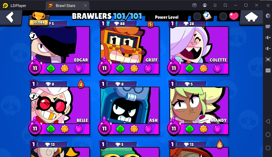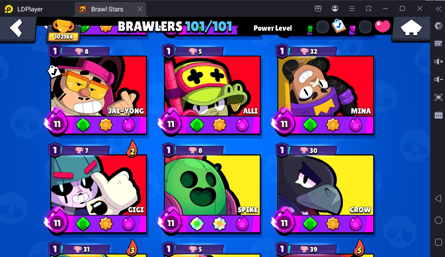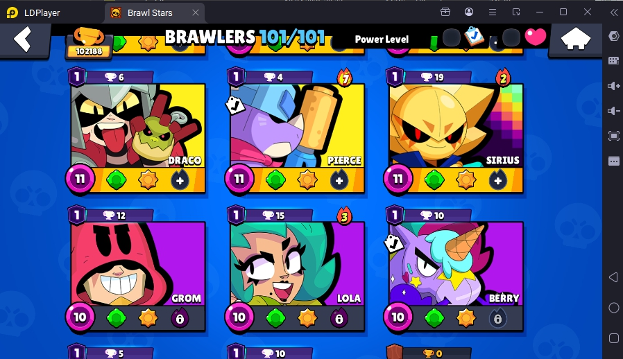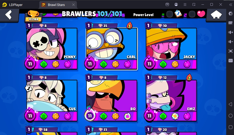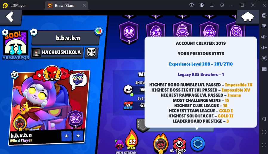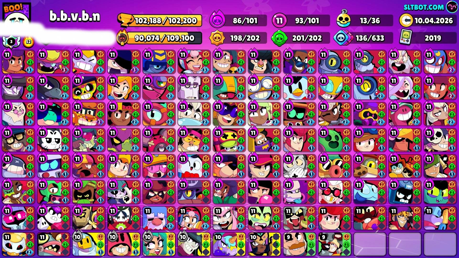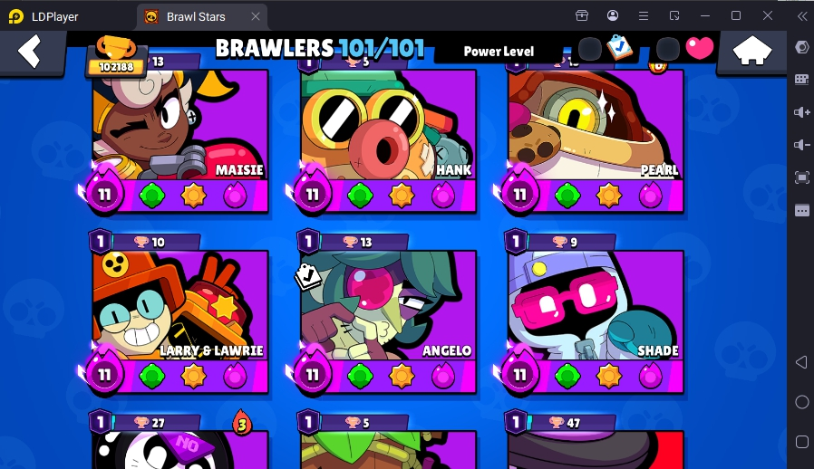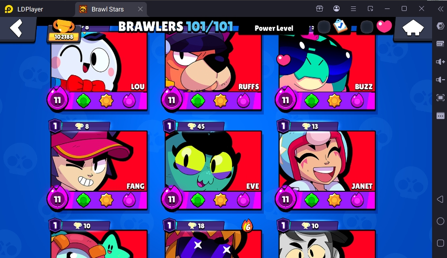 371 SKINS 💯 LEGACY R35 PIN 💜 102.188 TROPHIES 🏆 101 BRAWLERS 🐼 82 HYPERCHARGED 🩸 100 PRESTIGE 💜 93 MAX BRAWLERS 💛 13 BUFFIES 🔑 CAPTAIN CARL 🧡 CURSED KENJI 🧡 BRIGHT FAIRIE BONNIE 🧡 UNO CHESTER 🧡 WASP BO 💯 90K 100K