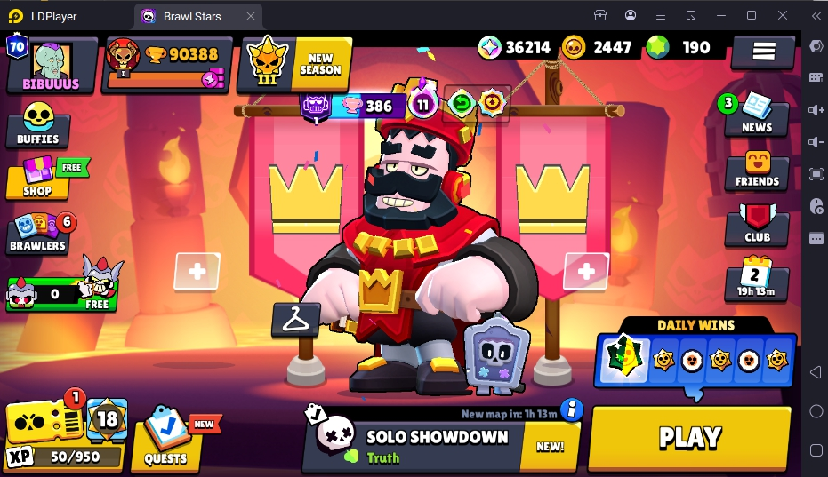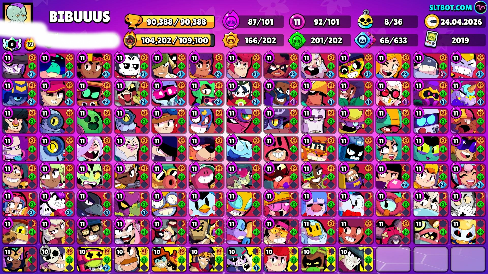 484 SKINS 💯 RED KING FRANK 💜 LEGENDARY 2025 🧡 90.388 TROPHIES 🏆 BRAWLERS 🐼 86 HYPERCHARGED 🩸 70 PRESTIGE 💜 92 MAX BRAWLERS 💛 8 BUFFIES 🔑 DEMON MORTIS 🧡 WOODY COLT 🧡 FURIOUS FANG 🧡 OROCHI EDGAR 🧡 SPACE OX BULL 💯 80K 90K