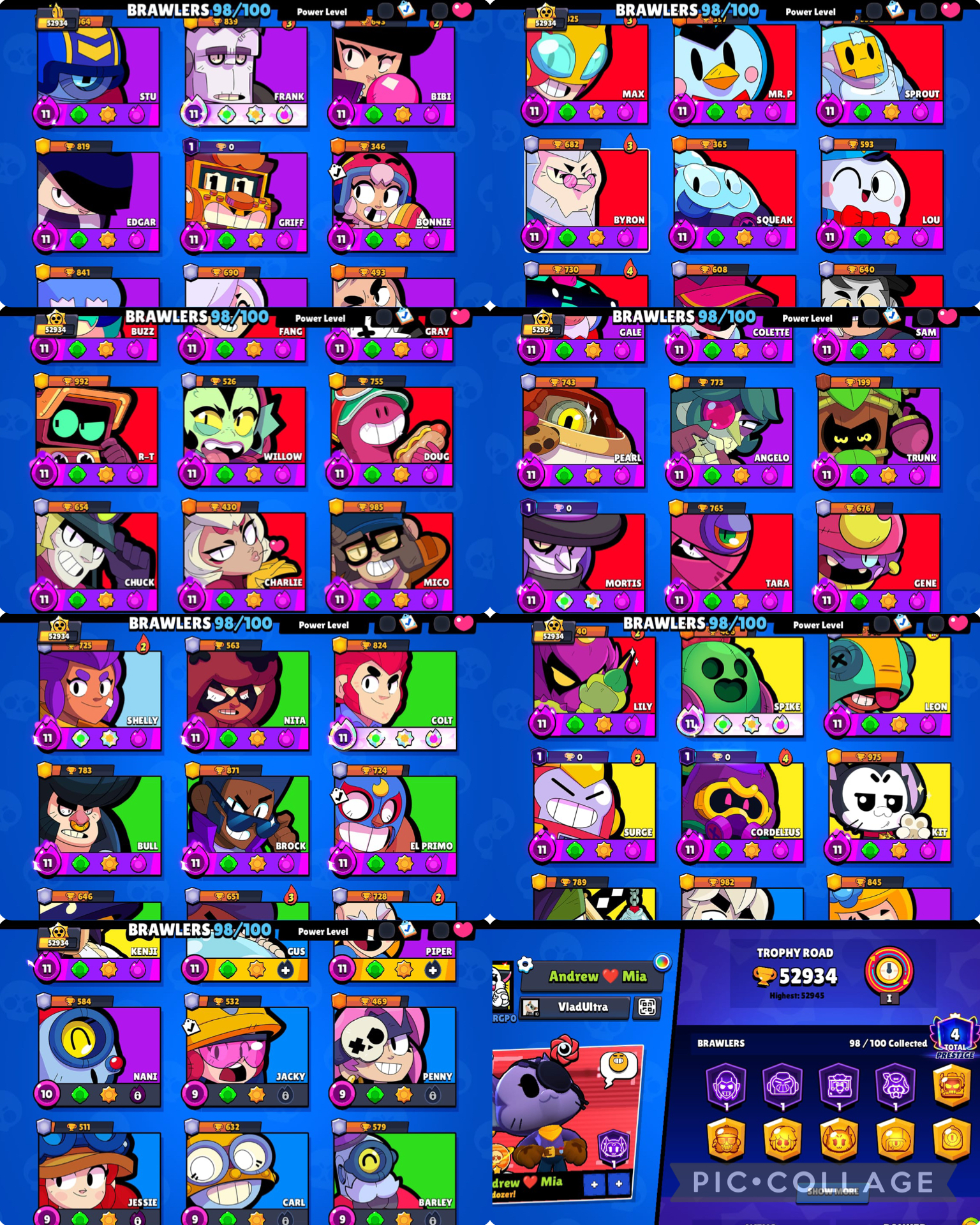 🏆 52.9K TROPHIES | 👾 98 BRAWLERS | 🔥 54 MAX BRAWLERS | ⚡ 52 HYPERCHARGES | 🎨 303 SKINS | 💜 4 PRESTIGE | 💠 16 BUFFIES