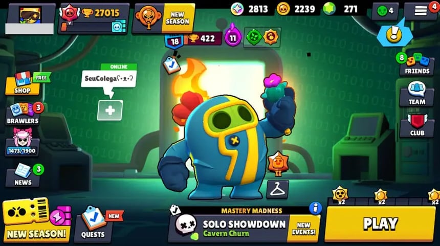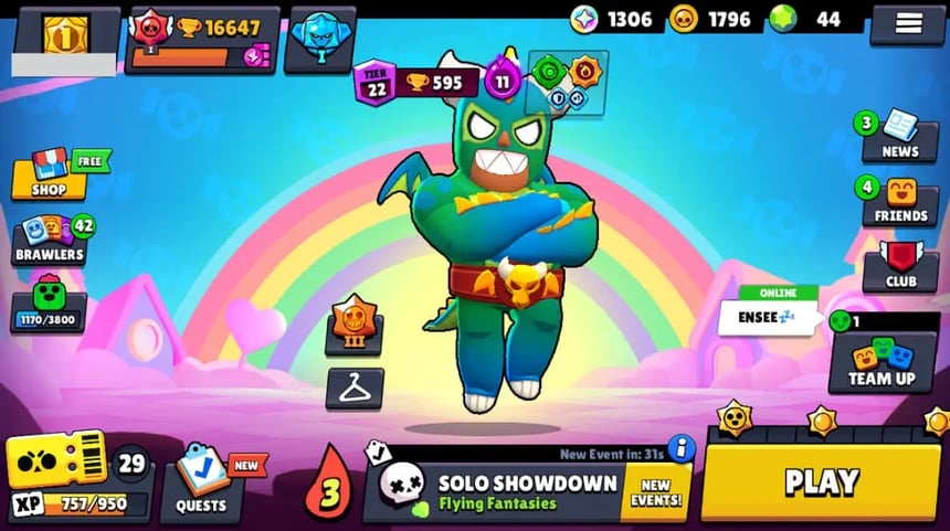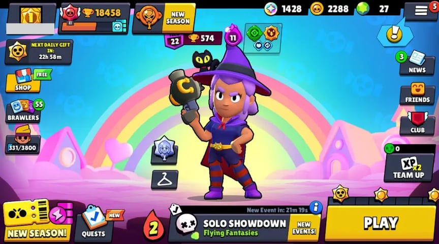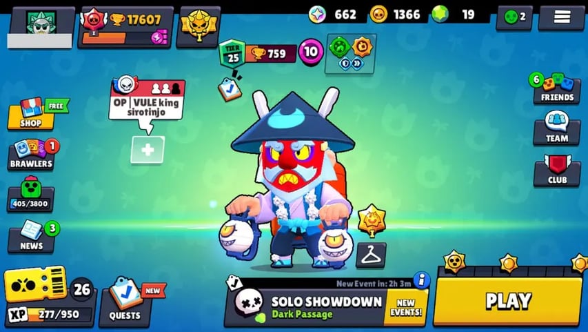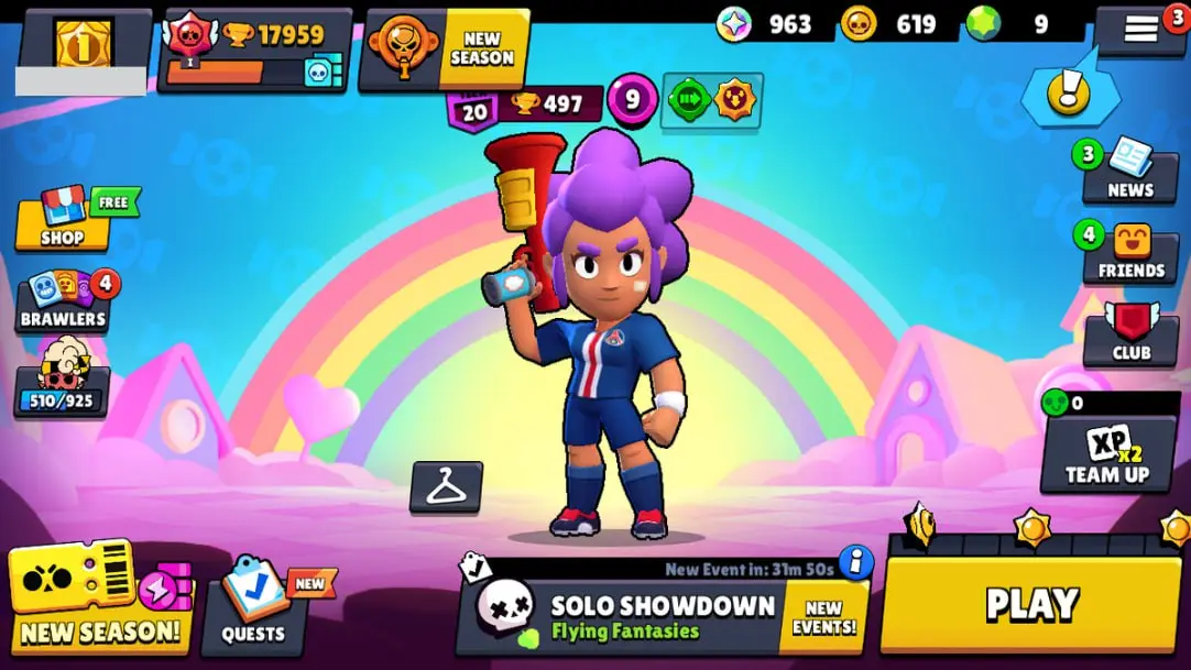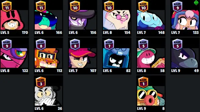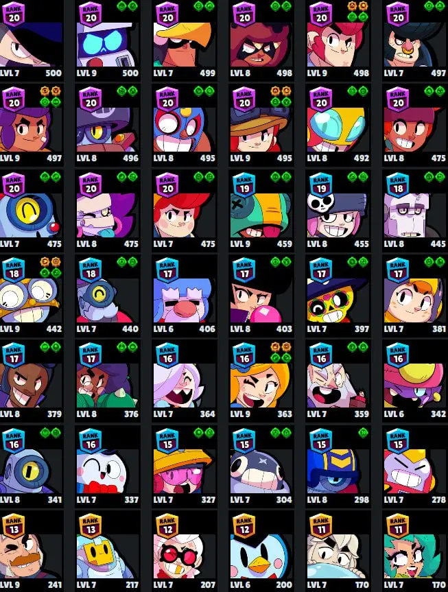 ๐ 56 Brawlers ๐ 17.959 Trophies ๐ 17 Skins ๐ 4 Legends ๐ 13 Mythics ๐ 20 Epics ๐ 619 Gold ๐ 9 Gems ๐ 963 Blings ๐