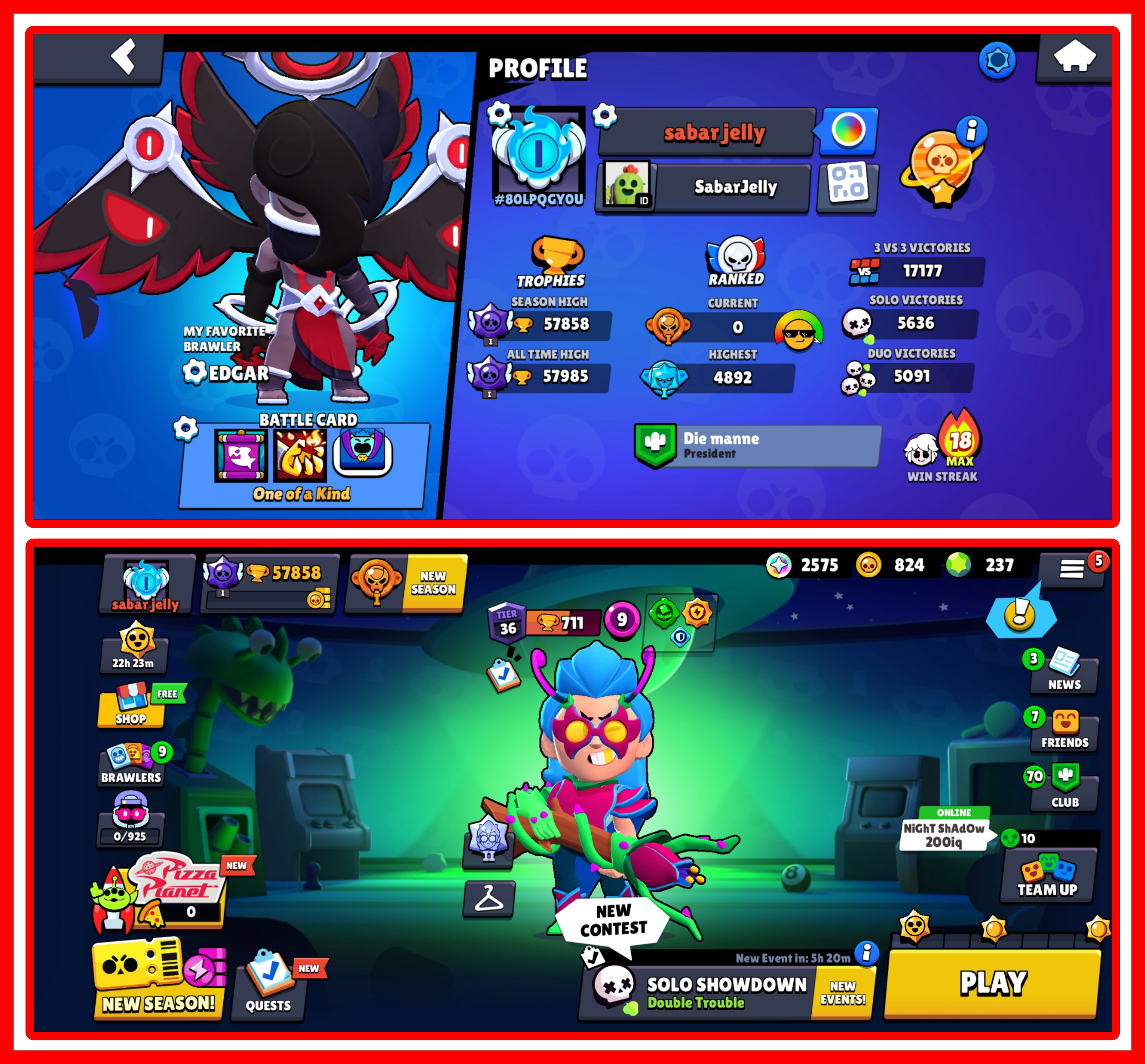 RARE SKINS🥵 58K TROPHIES 🏆 BRAWLERS 88/91😍🔥 824 COINS 🪙 2575 BLING 🤩 18 HYPERCHARGED ☠️ 25 MAX 🎁🚀 138 SKINS 💗🔥 INSTANT DELIVERY 💯☑️ BOTH IOS AND ANDROID ☑️🤝#fz