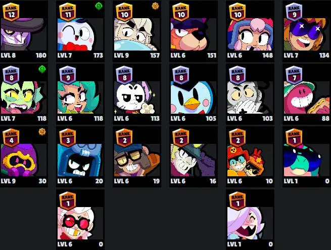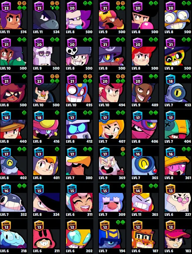 ๐ 62 Brawlers ๐ 18.458 Trophies ๐ 30 Skins ๐ 6 Legends ๐ 18 Mythics ๐ 19 Epics ๐ 2288 Gold ๐ 27 Gems ๐ 1428 Blings ๐