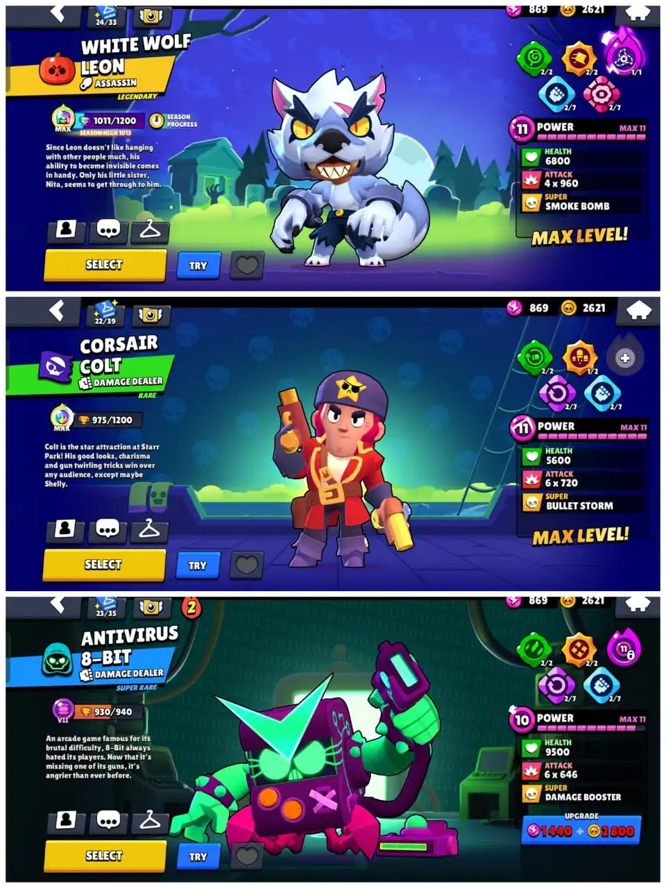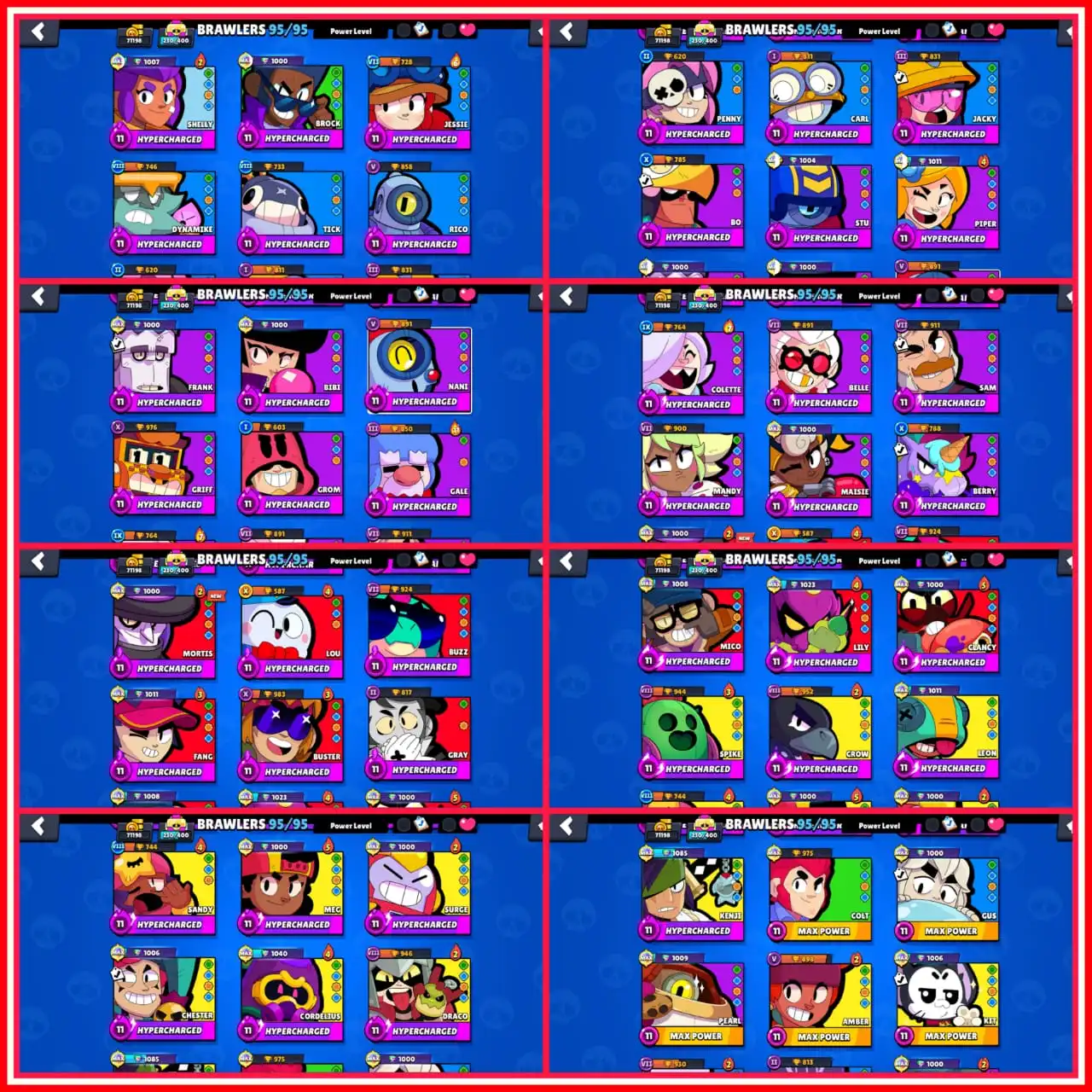 71k Trophy 🌟Brawl Pass : ✅🌟All Brawlers🌟7x New Mythic 🌟43x Hypercharge🌟48x Maxed🌟340+ Skins🌟Solar Fame 1🌟White Werewolf Leon🌟Rarest Antivirus 8-Bit🌟640+ Collector's pin🌟11x Titles