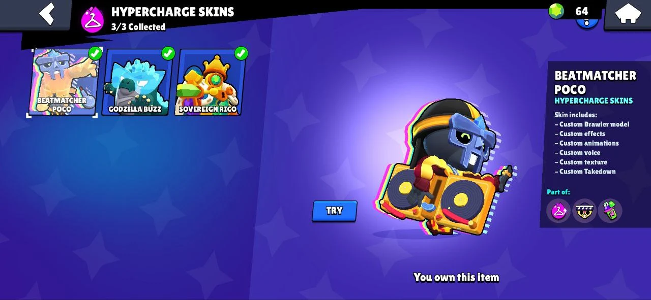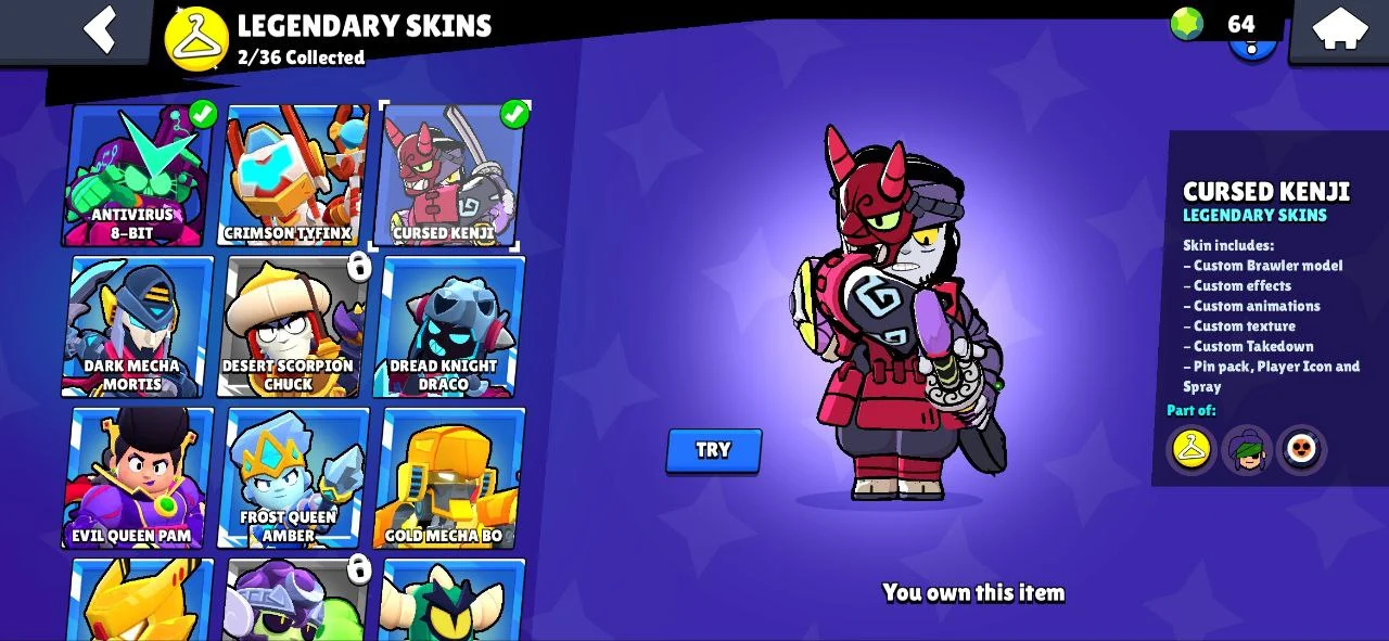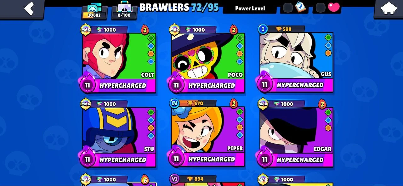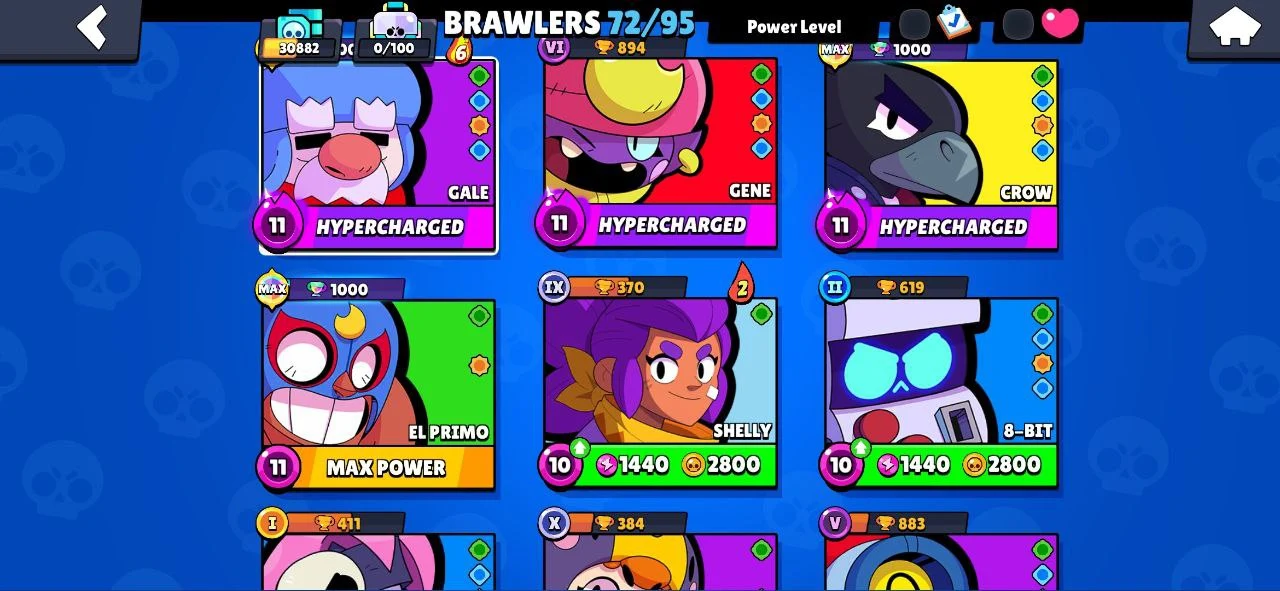 ⭐ 72 BRAWLERS 🎯 10 MAX BRAWLERS 🐼 9 HYPERCHARGED 🎯 30882 TROPHIES 🧥 183 SKINS 🔵 BEATMATCHER POCO 🔵 ANTIVIRUS 8-BIT 🔵 CURSED KENJI 🔐 FULL ACCESS