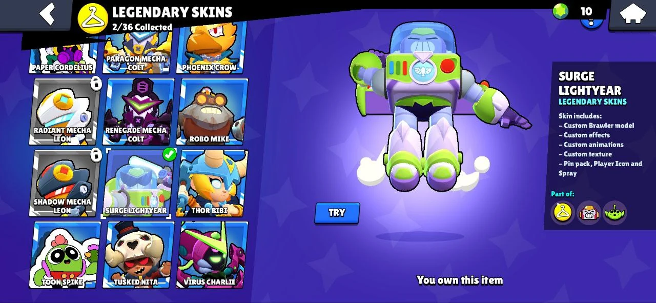 ⭐ 72 BRAWLERS 🎯 11 MAX BRAWLERS 🐼 10 HYPERCHARGED 🎯 34169 TROPHIES 🧥 125 SKINS 🔵 SURGE LIGHTYEAR 🔵 CURSED KENJI 🔵 DEVILISH MORTIS 🔐 FULL ACCESS