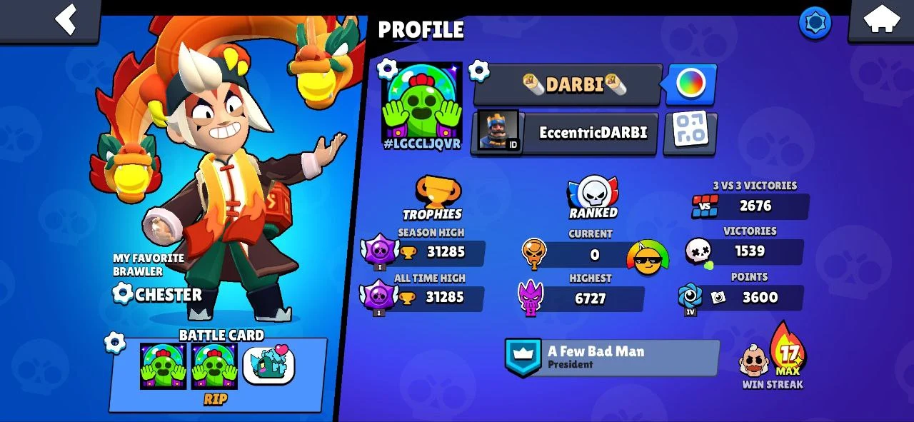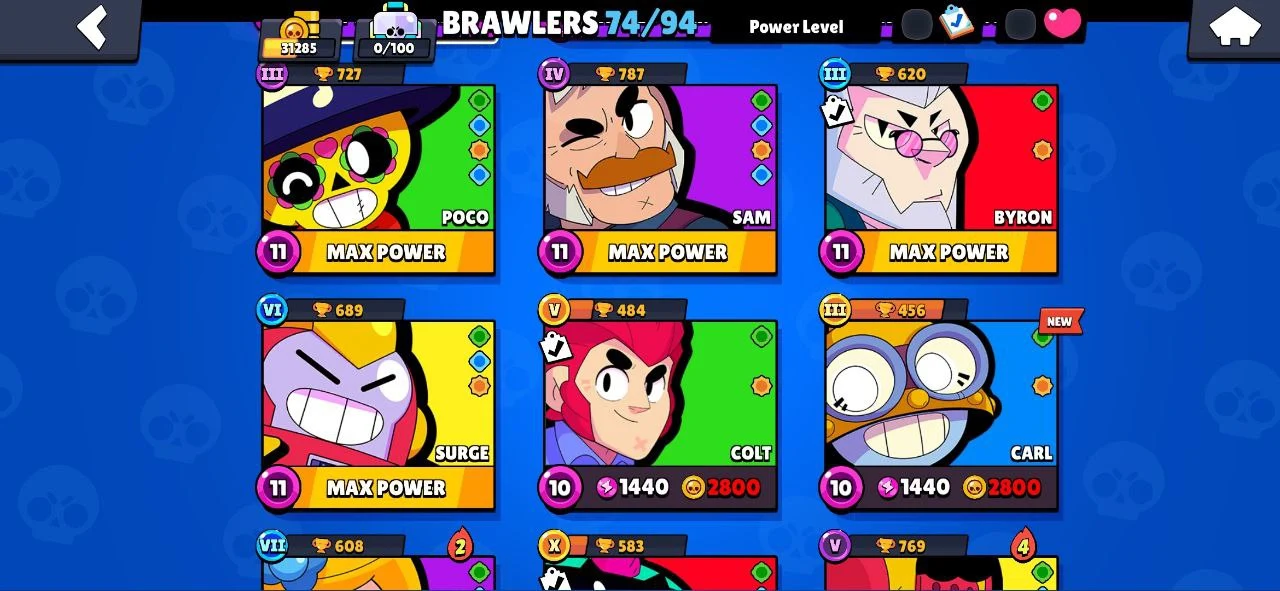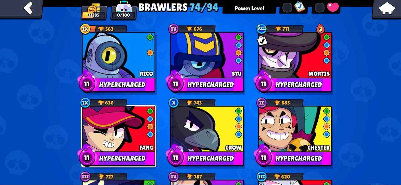 ⭐ 74 BRAWLERS 🎯 10 MAX BRAWLERS 🐼 6 HYPERCHARGED 🎯 31285 TROPHIES 🧥 112 SKINS 🔵 PHOENIX CROW 🔵 SUPER LIGHTYEAR 🔵 ROBO MIKE 🔐 FULL ACCESS