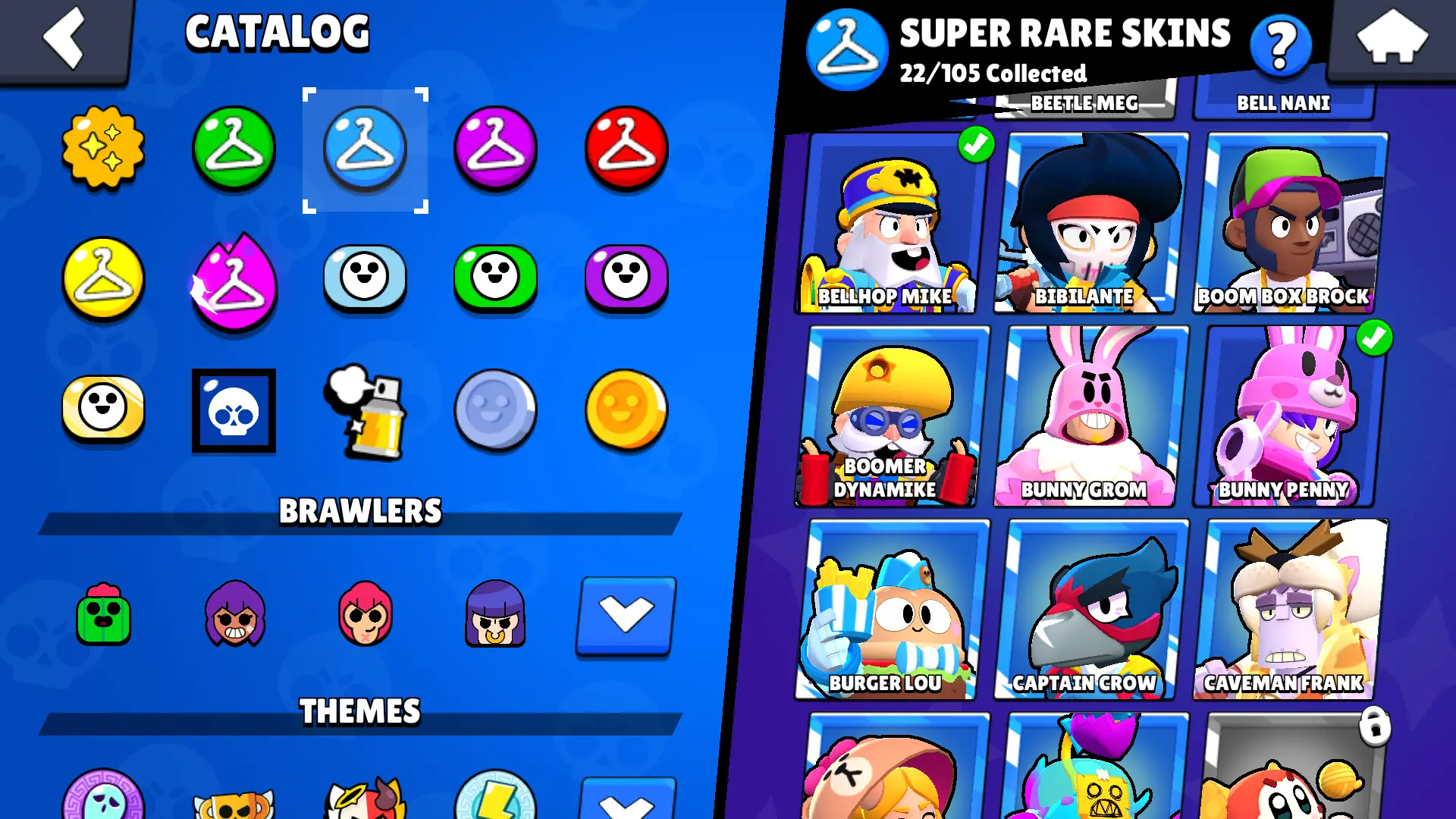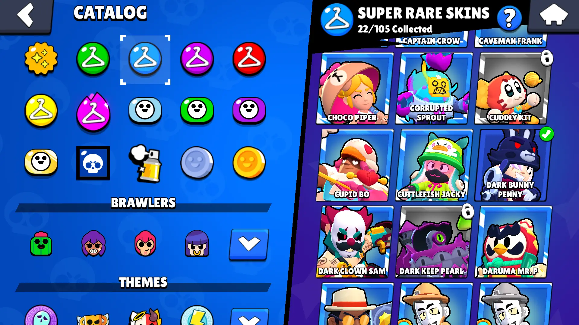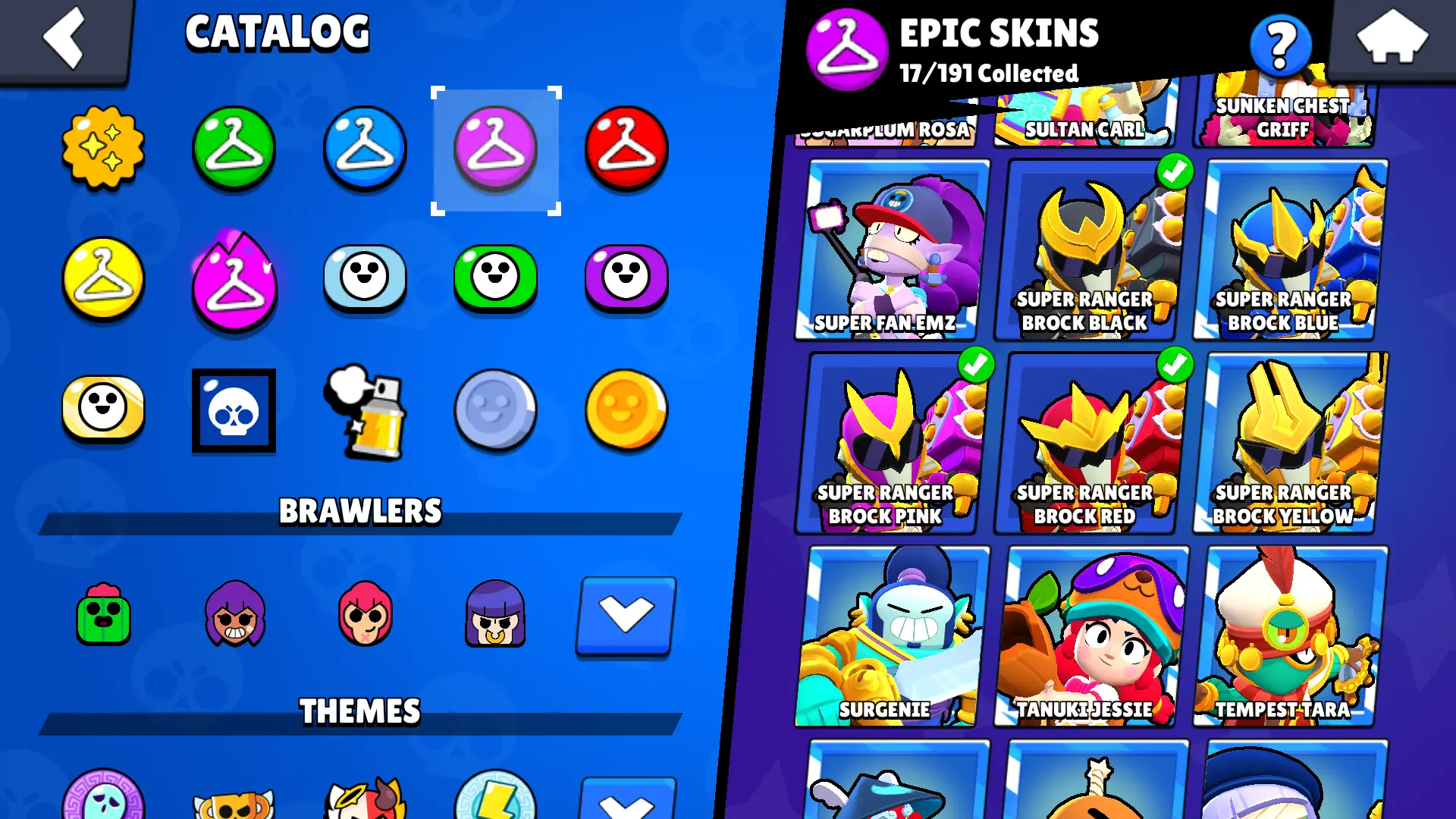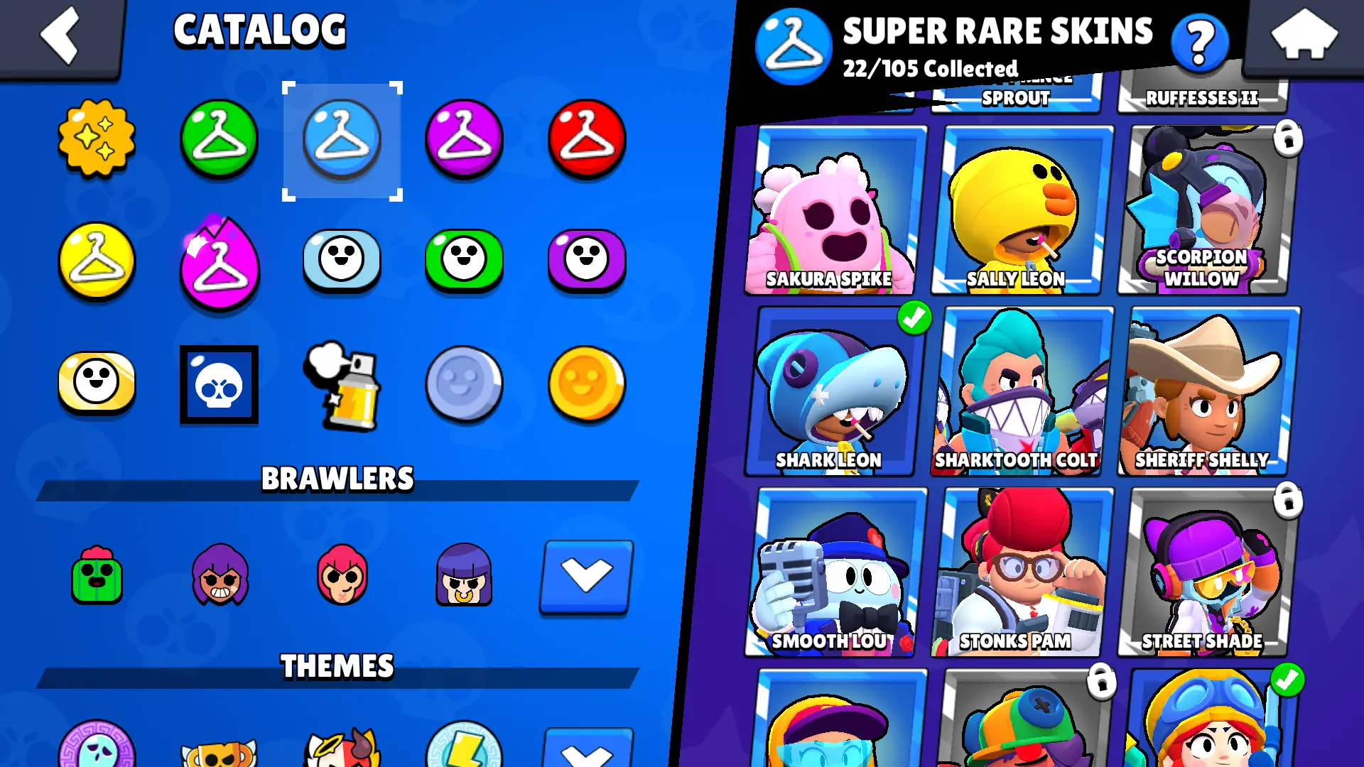 77 SKINS | 22156 TROPHIES | KING LOU | FILMMAKER BUZZ | ROCKABILLY MORTIS | SUPER RANGER BROCK PINK | SUPER RANGER BROCK BLACK | SUPER RANGER BROCK RED | WARRIOR BO | CURSED PIRATE BIBI | ROSIE CHARLIE | HARPY MELODIE | POISON CAP CORDELIUS | 66 BRAWLERS