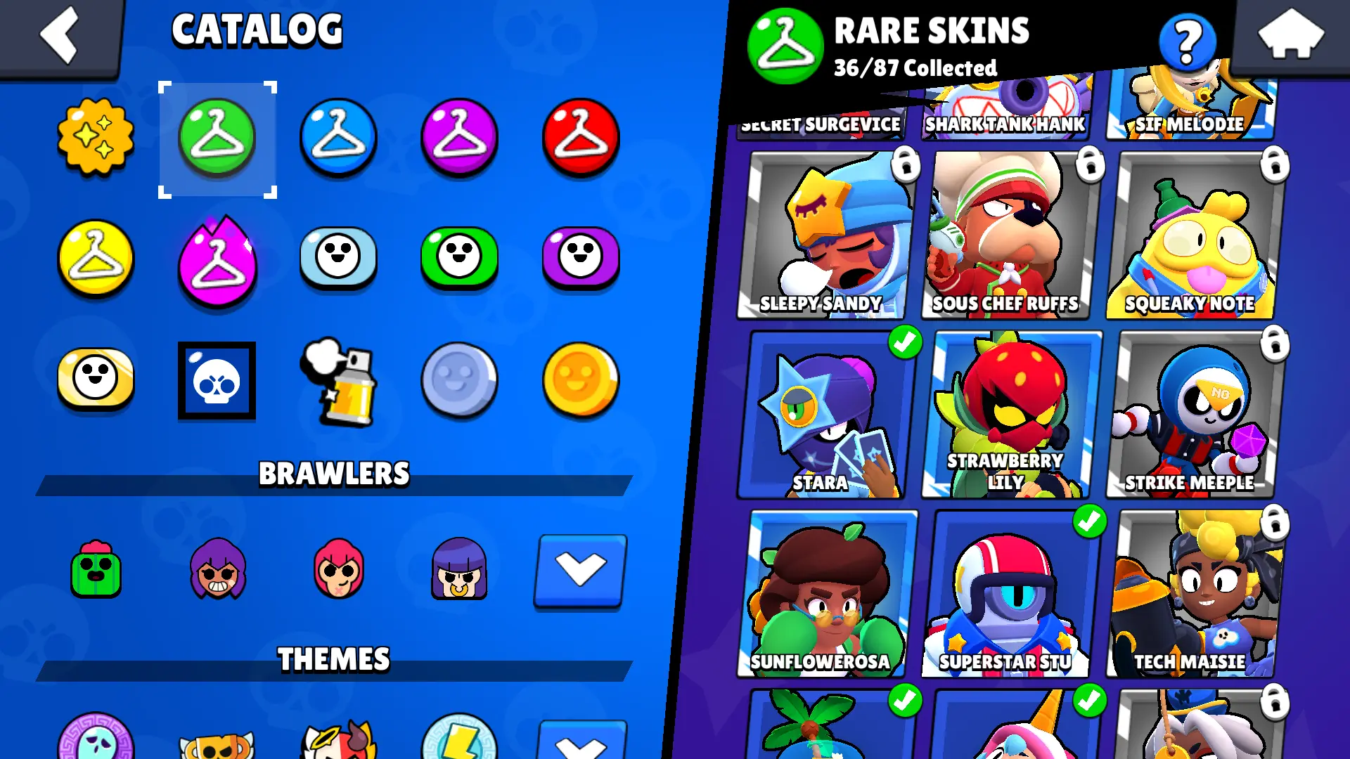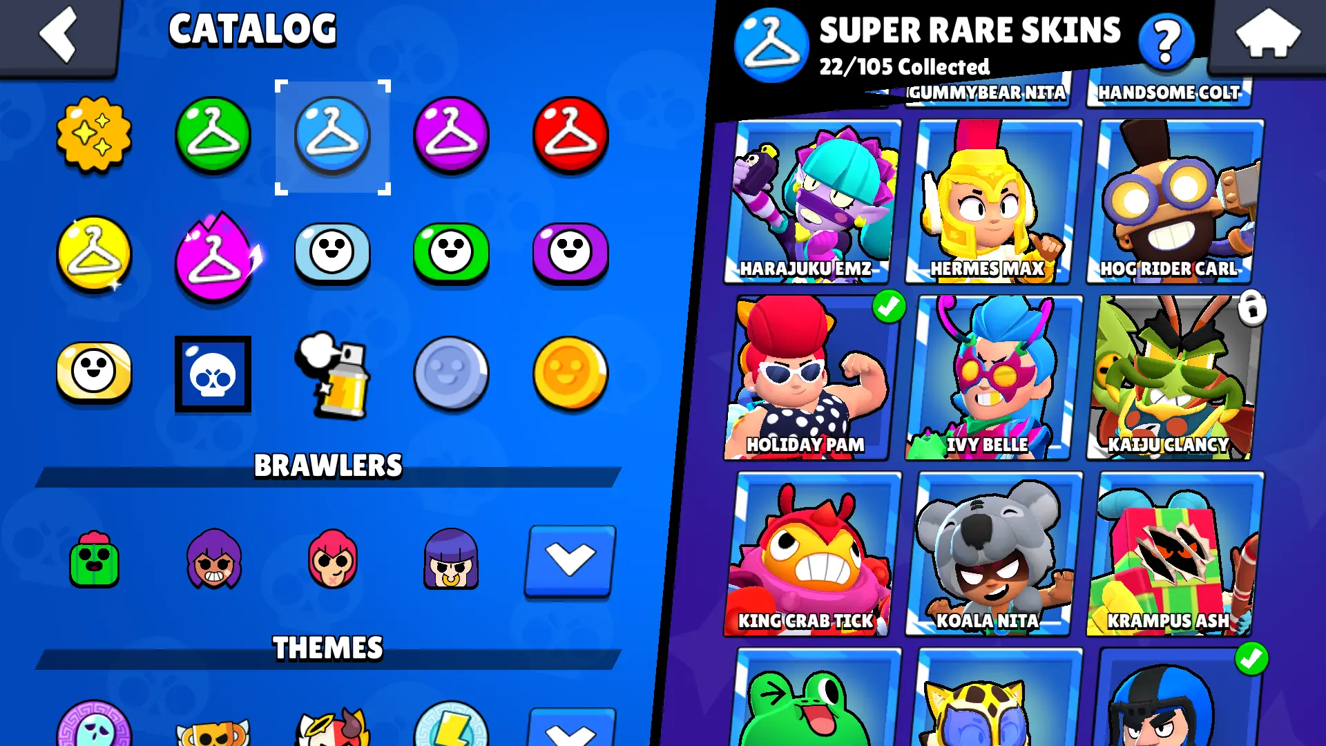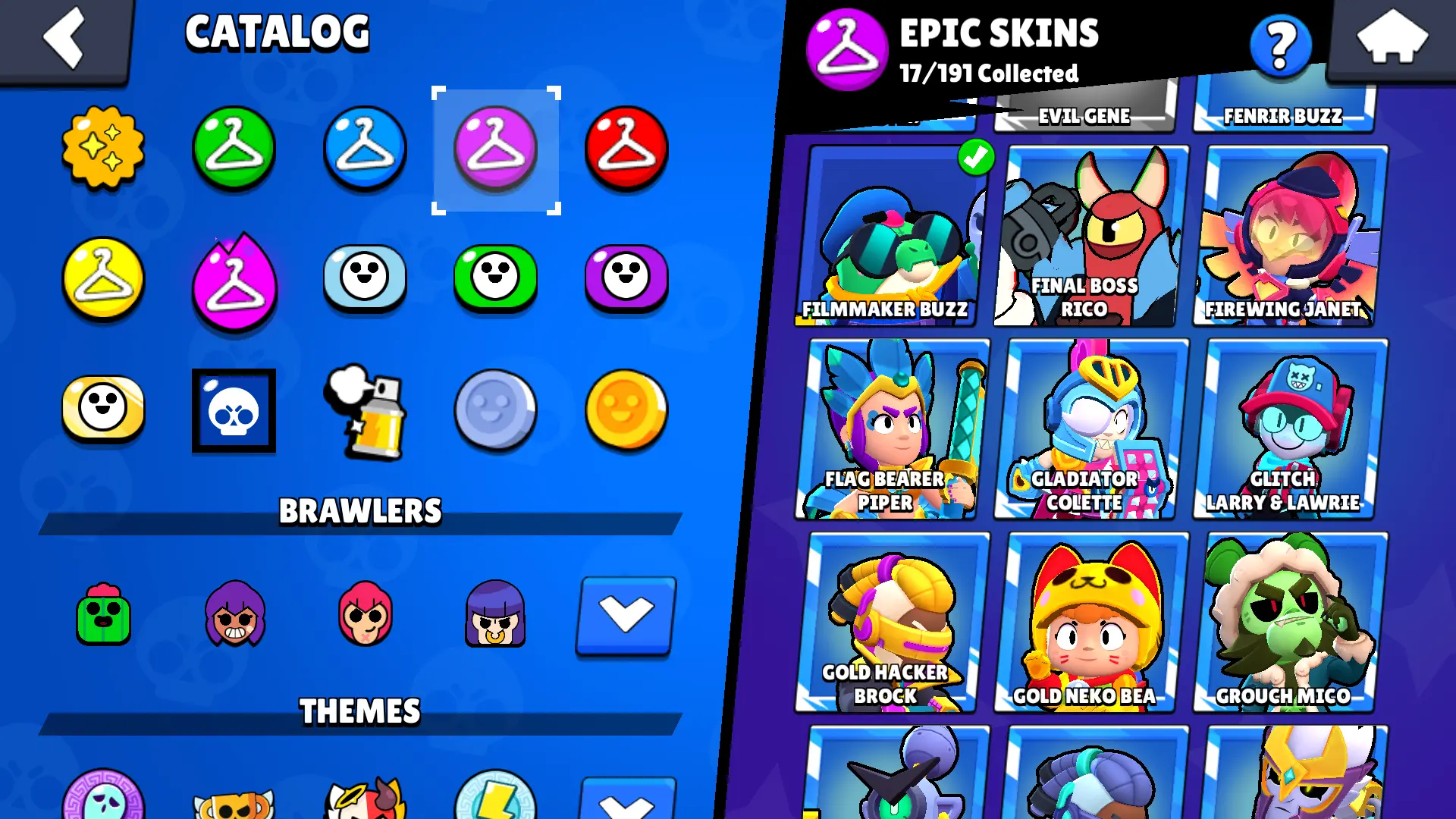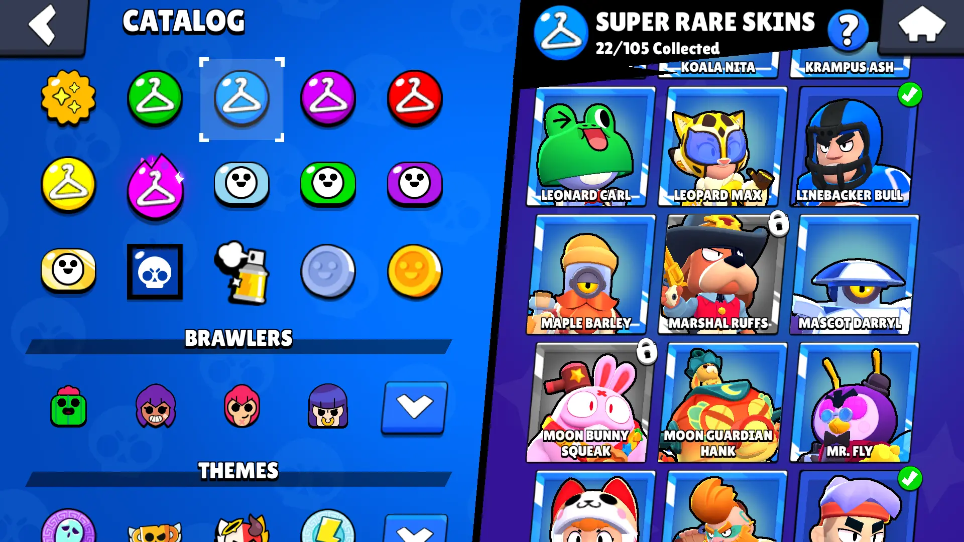 77 SKINS | 22156 TROPHIES | KING LOU | FILMMAKER BUZZ | ROCKABILLY MORTIS | SUPER RANGER BROCK PINK | SUPER RANGER BROCK BLACK | SUPER RANGER BROCK RED | WARRIOR BO | CURSED PIRATE BIBI | ROSIE CHARLIE | HARPY MELODIE | POISON CAP CORDELIUS | 66 BRAWLERS