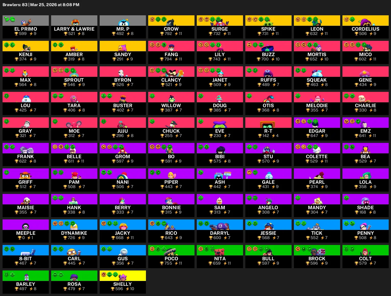 83 BRAWLERS | 🏆 40357 TROPHIES | ⭐️8 LEGENDARY BRAWLERS | ⭐️Crow + Surge + Spike + Leon + Cordelius | ⭐️INSTANT DELIVERY | O4G