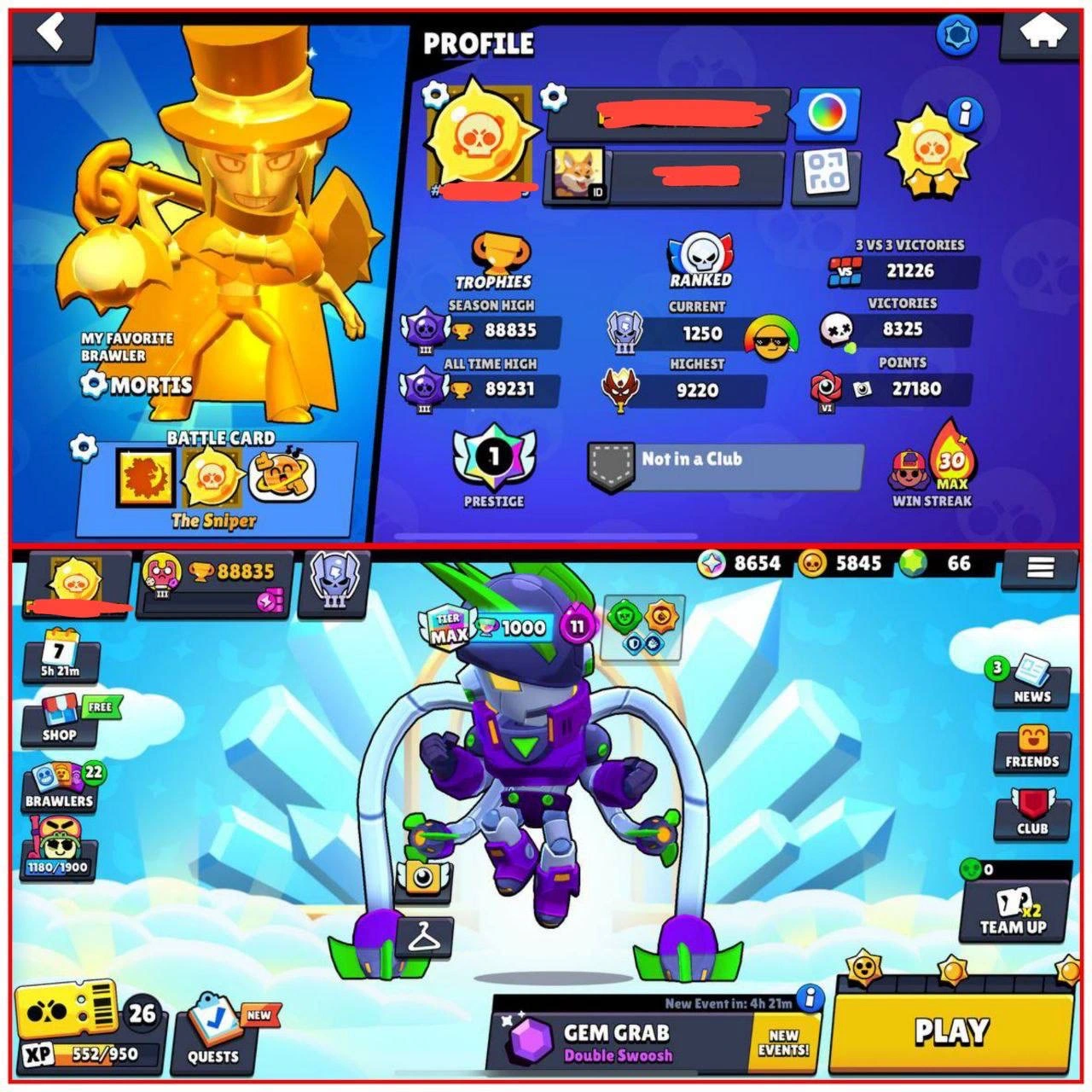 89000+ TROPHIES 💫 1 PRESTIGE 🔥 72 MAX POWER BRAWLERS ⭐️ 44 HYPERCHARGED ⚡️ SOLAR FAME 2 💥 HIGHEST RANK: MASTERS 🌊 GOLD MORTIS, MECHA EDGAR, WIZARD BYRON, MECHA PALADIN SURGE ✨ 10 BRAWLERS MASTERY ☠️ 272 TOTAL SKINS