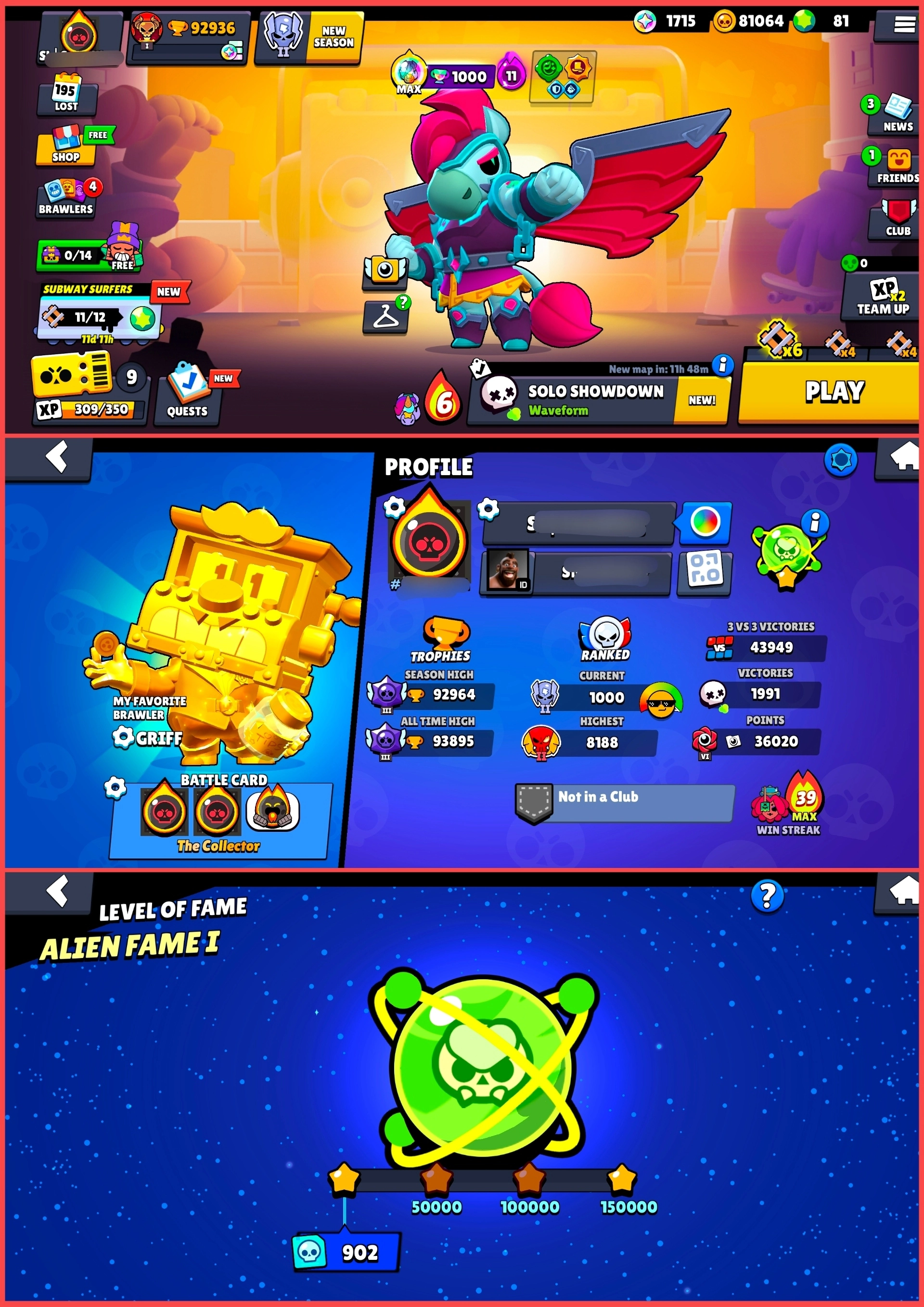 Alien Fame (Rarest ingame item) 92k Trophies & 94/95 Maxed Brawlers + 69 Hypercharges | 137k Power Points, 81k Coins & 39 Titles | 446 Rare Skins CH396