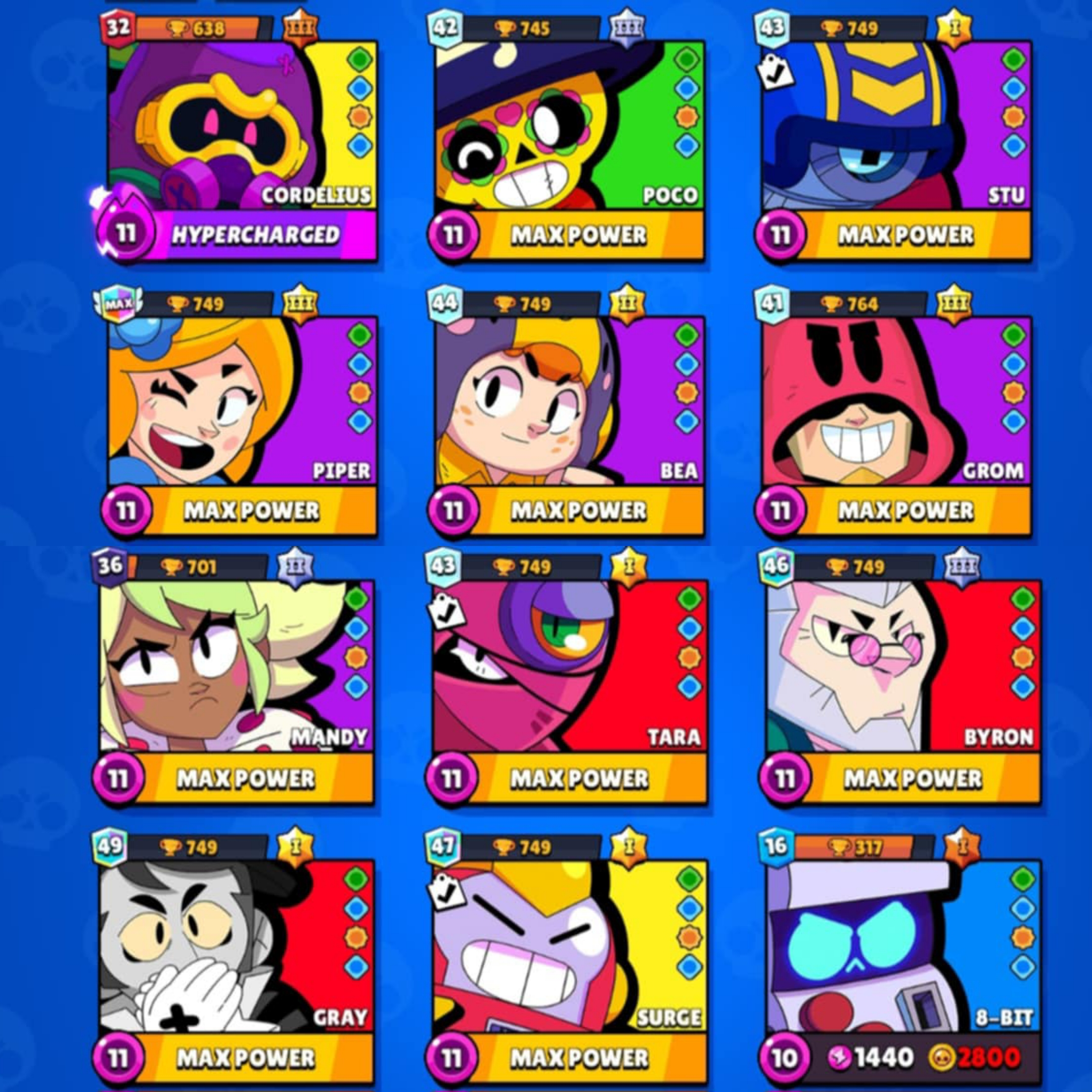 ANDROID/IOS 🔥 214 Premium Skins ⚡39690 Trophy 🏆 29 Max [ 21 Hypercharged ] ✨83/88 Brawlers received 🤯 Safe Guarantee