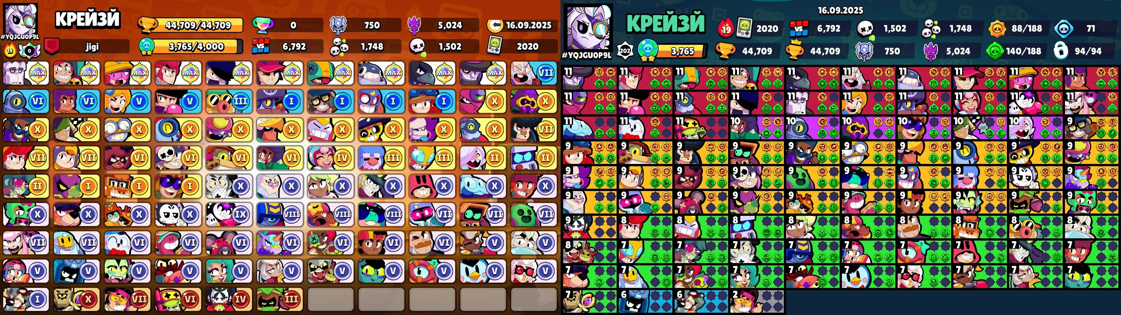BR1219 44709 Trophy | 94 Brawler + 23 (MAX) + 19 (HYPERCHARGED) | 191 Skins + 3 GYPER + 2 Legend + 2 Mythic + 39 Epic | IOS/AND