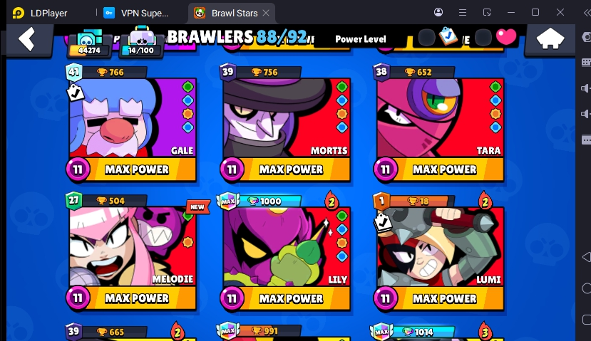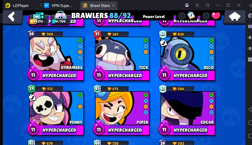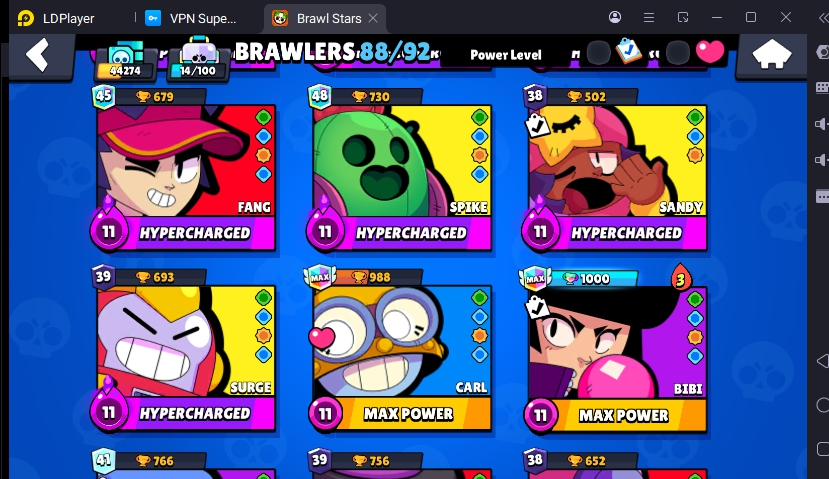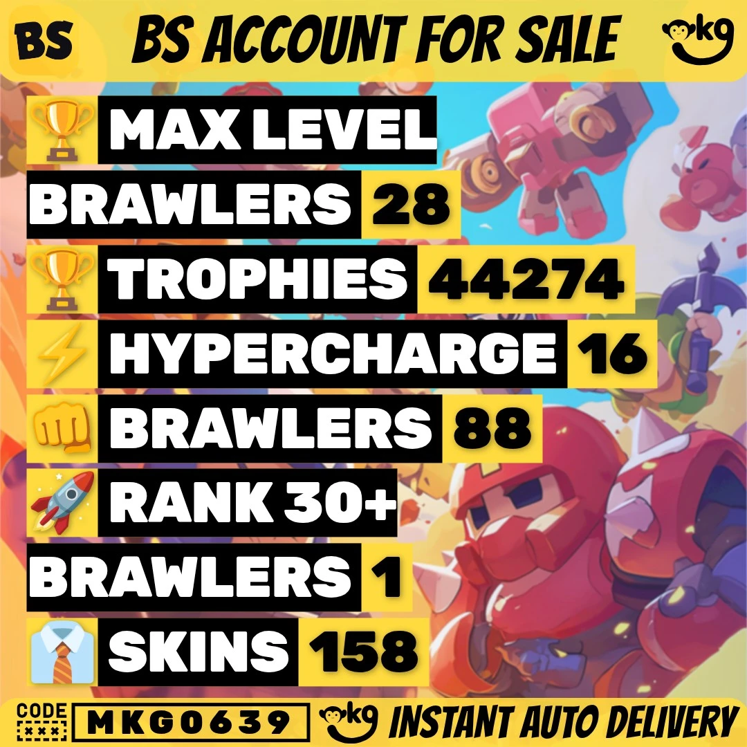 158 SKINS ๐ฏ PIN 11.11 ๐งก 44.274 TROPHIES ๐ 88 BRAWLERS ๐ผ 16 HYPERCHARGED ๐ฉธ 28 MAX BRAWLERS !MKG0639