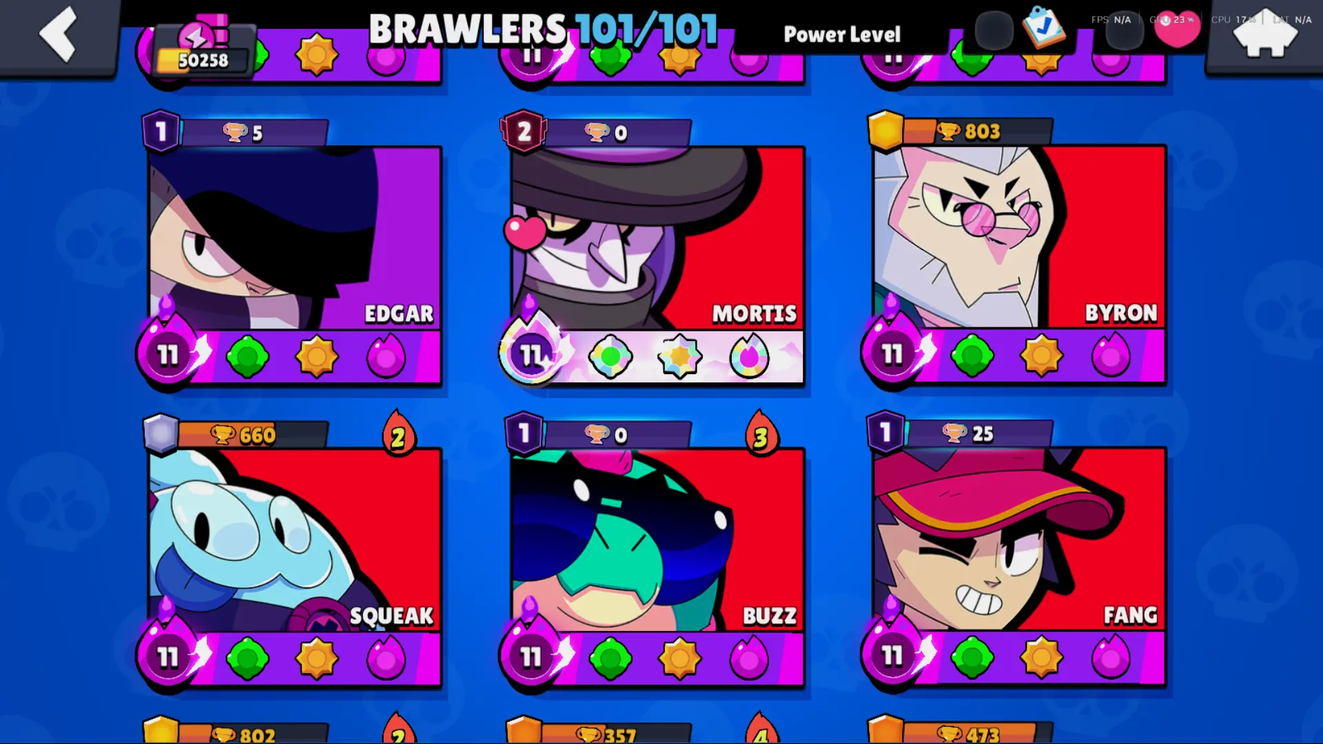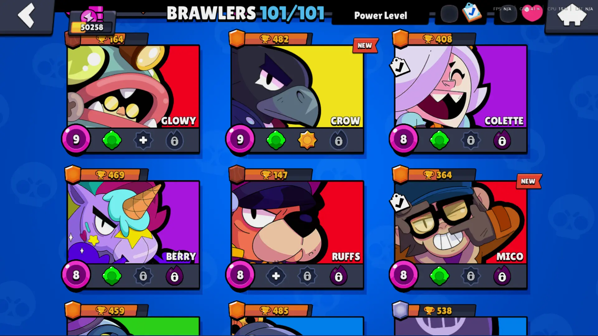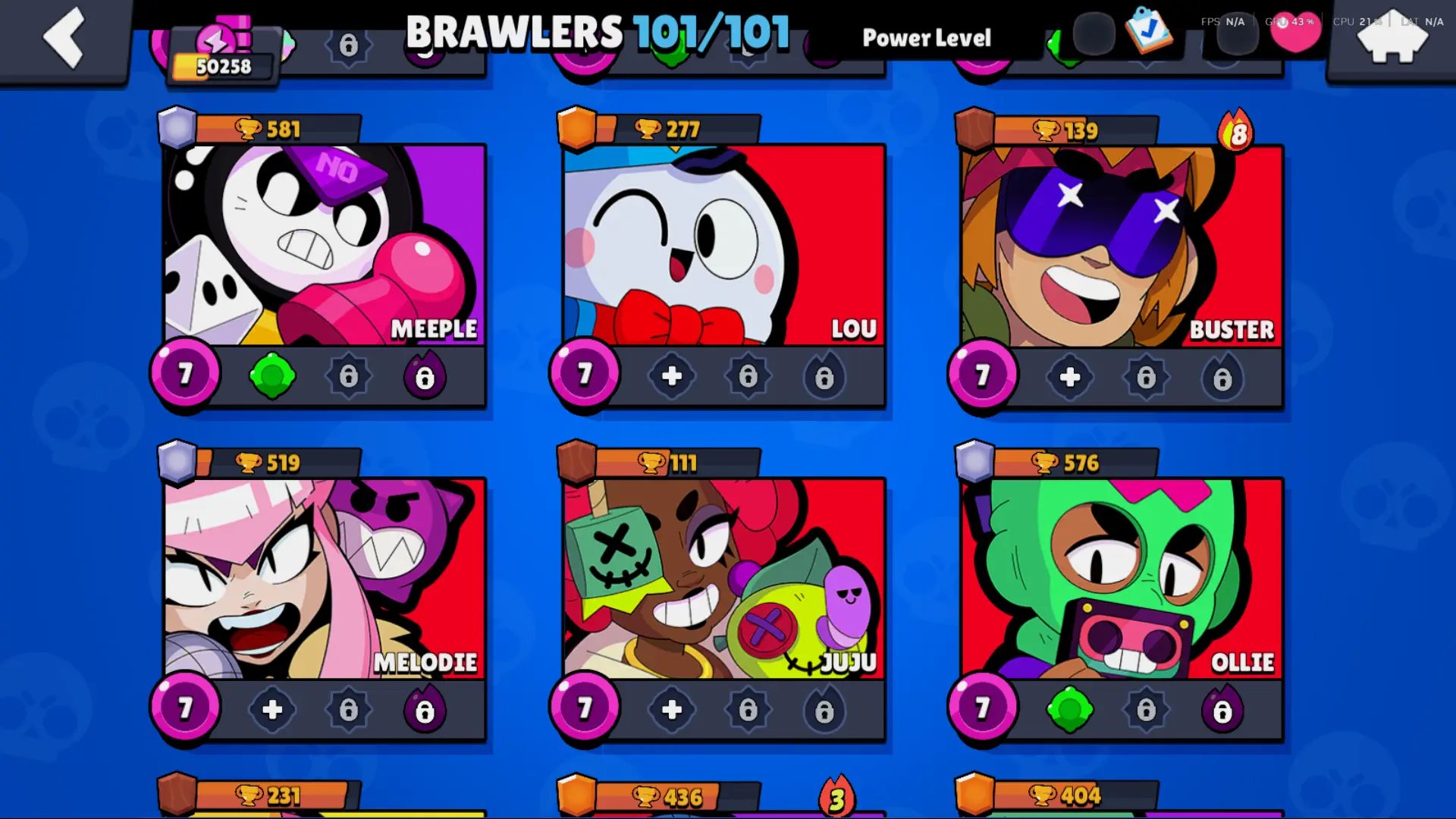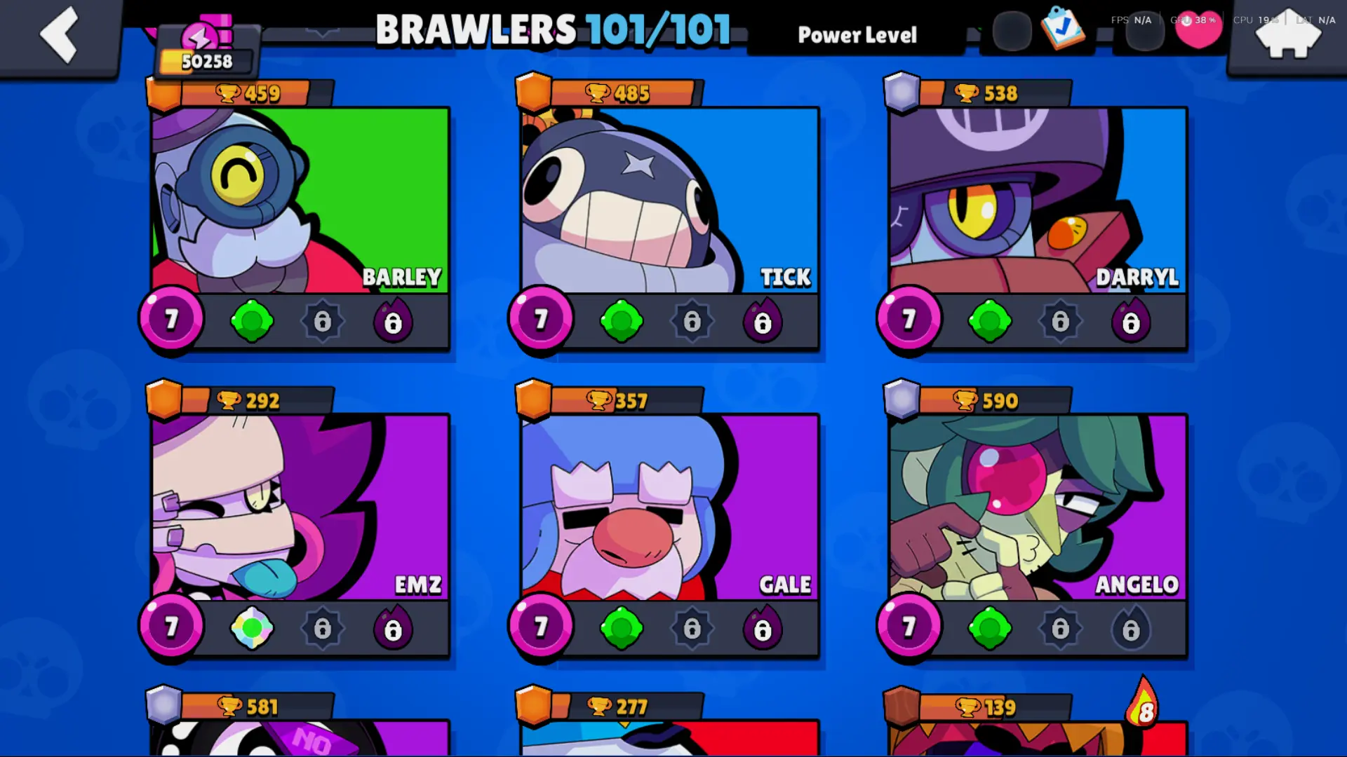 Bs 50k 🔥 PLAYER ID CHANGEABLE . Prestige 2 ✅ COLT PRO PASS . 39 max ✅ 290 skins . 5 brawl pass plus ✅ 69 hypercharges