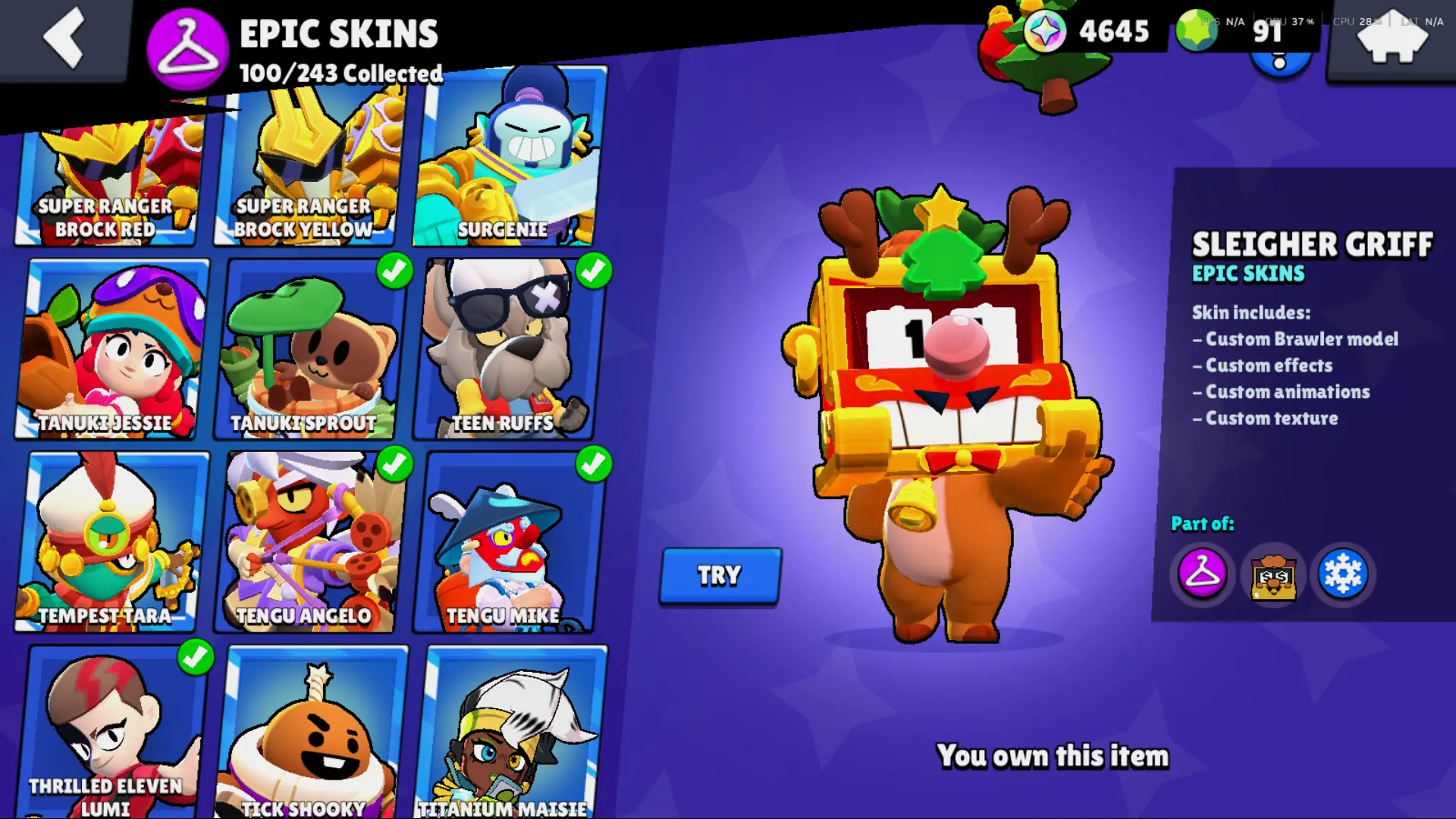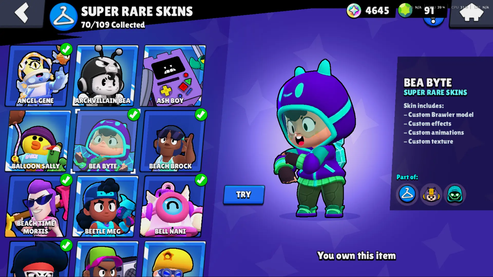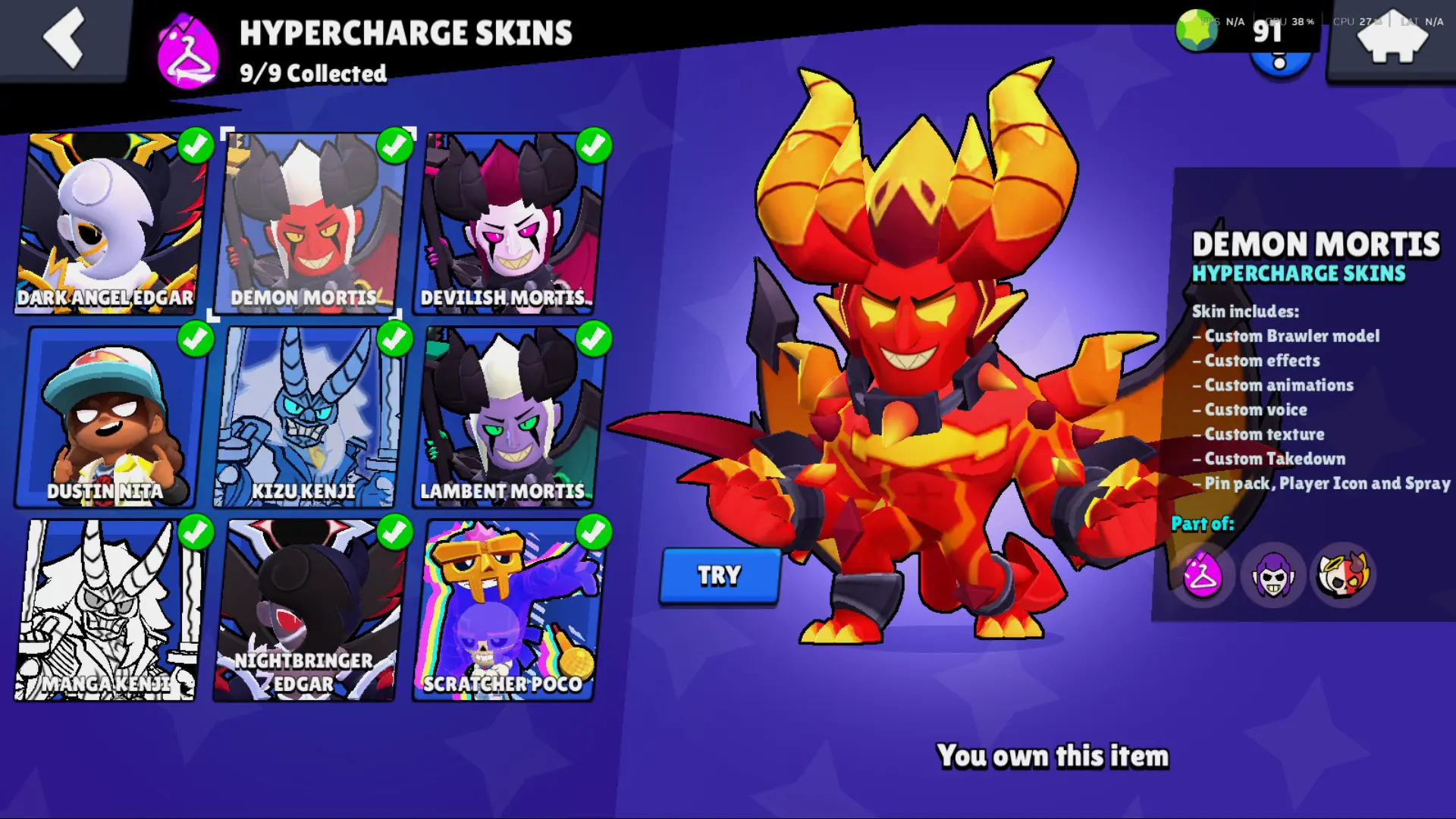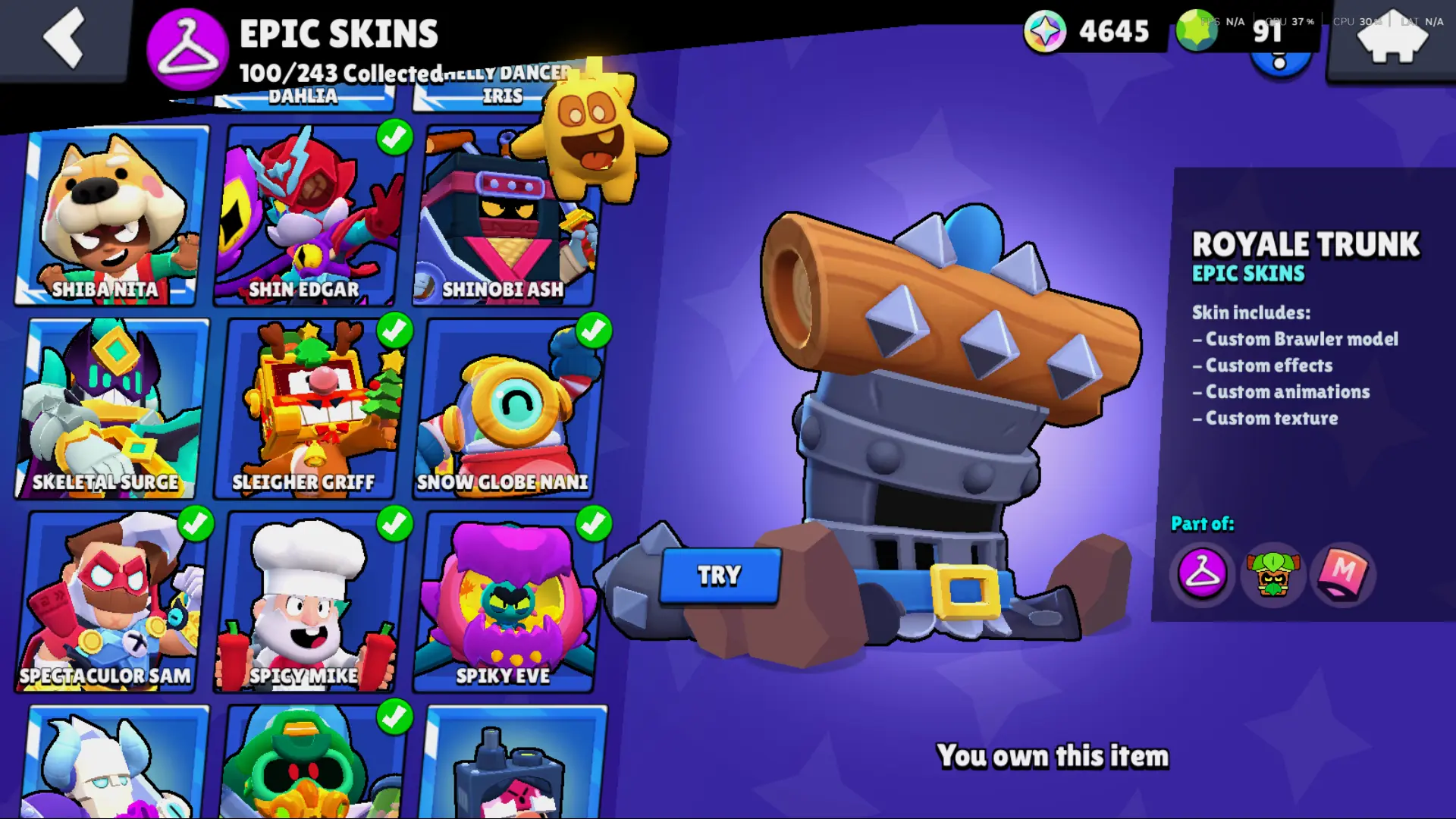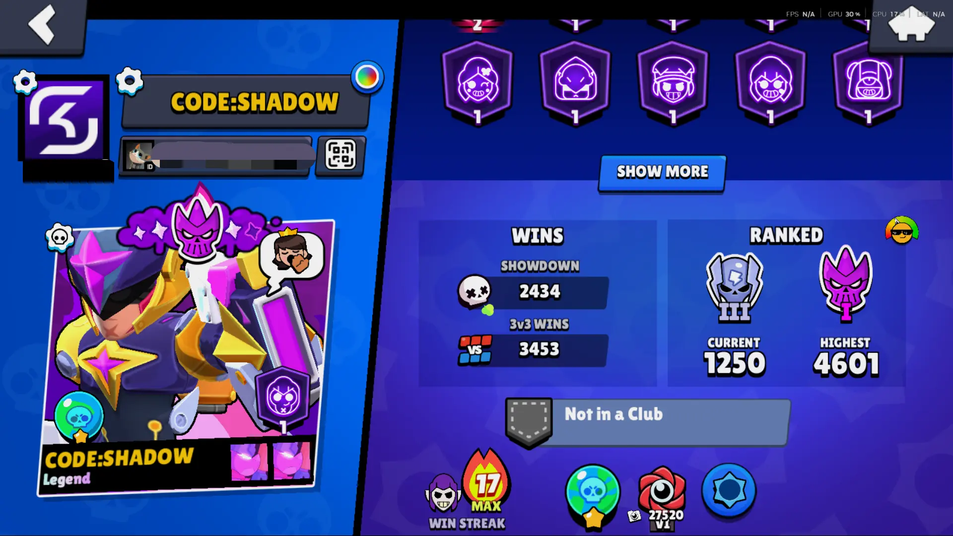 Bs 50k 🔥 PLAYER ID CHANGEABLE . Prestige 2 ✅ COLT PRO PASS . 39 max ✅ 290 skins . 5 brawl pass plus ✅ 69 hypercharges