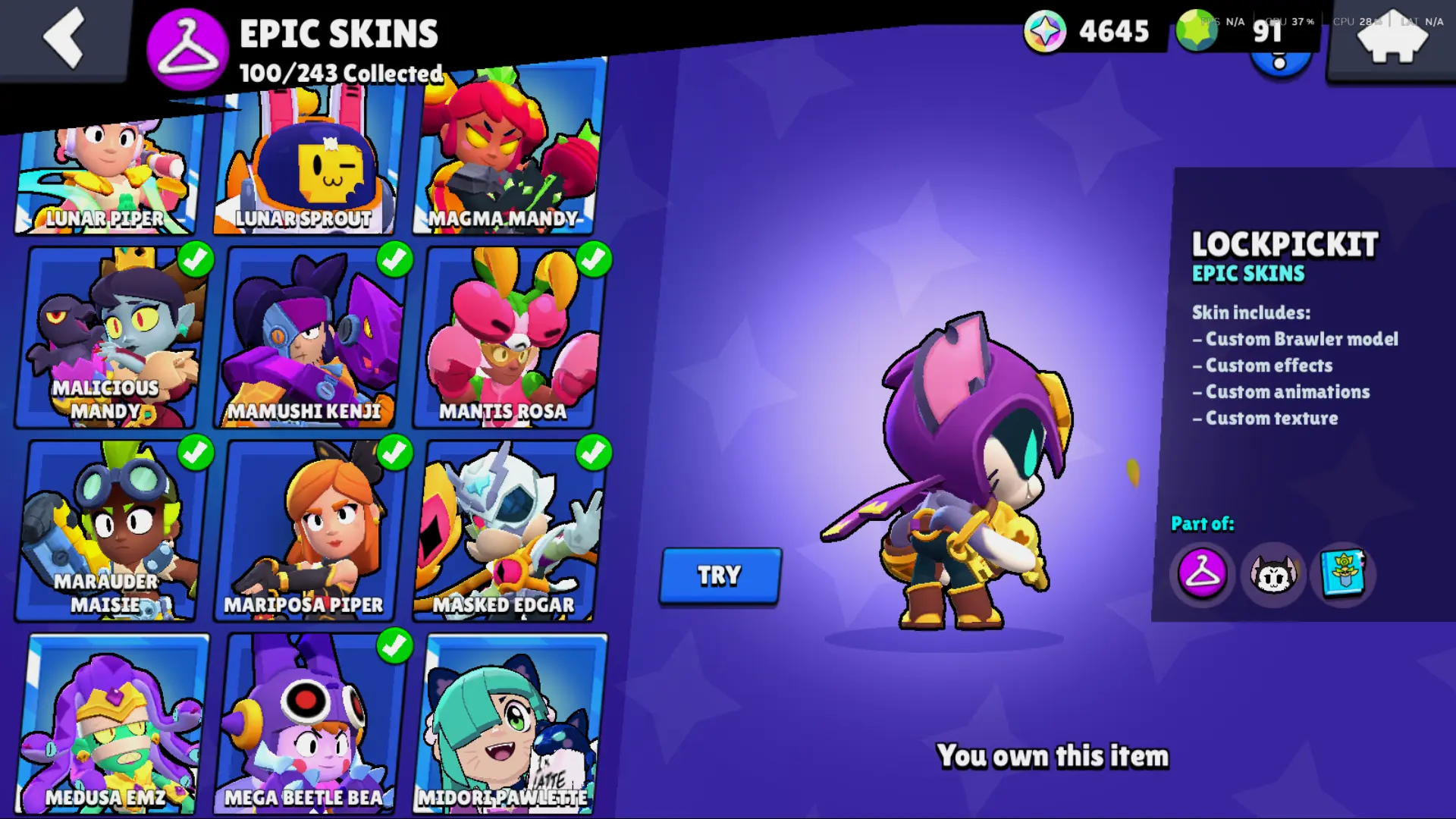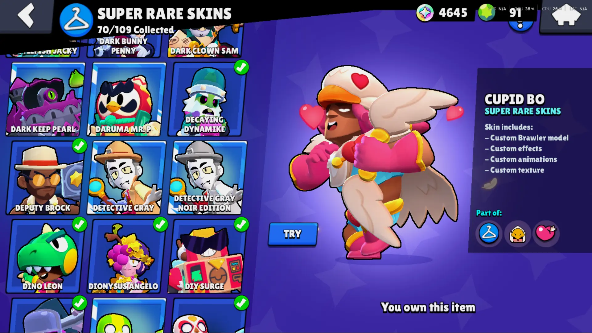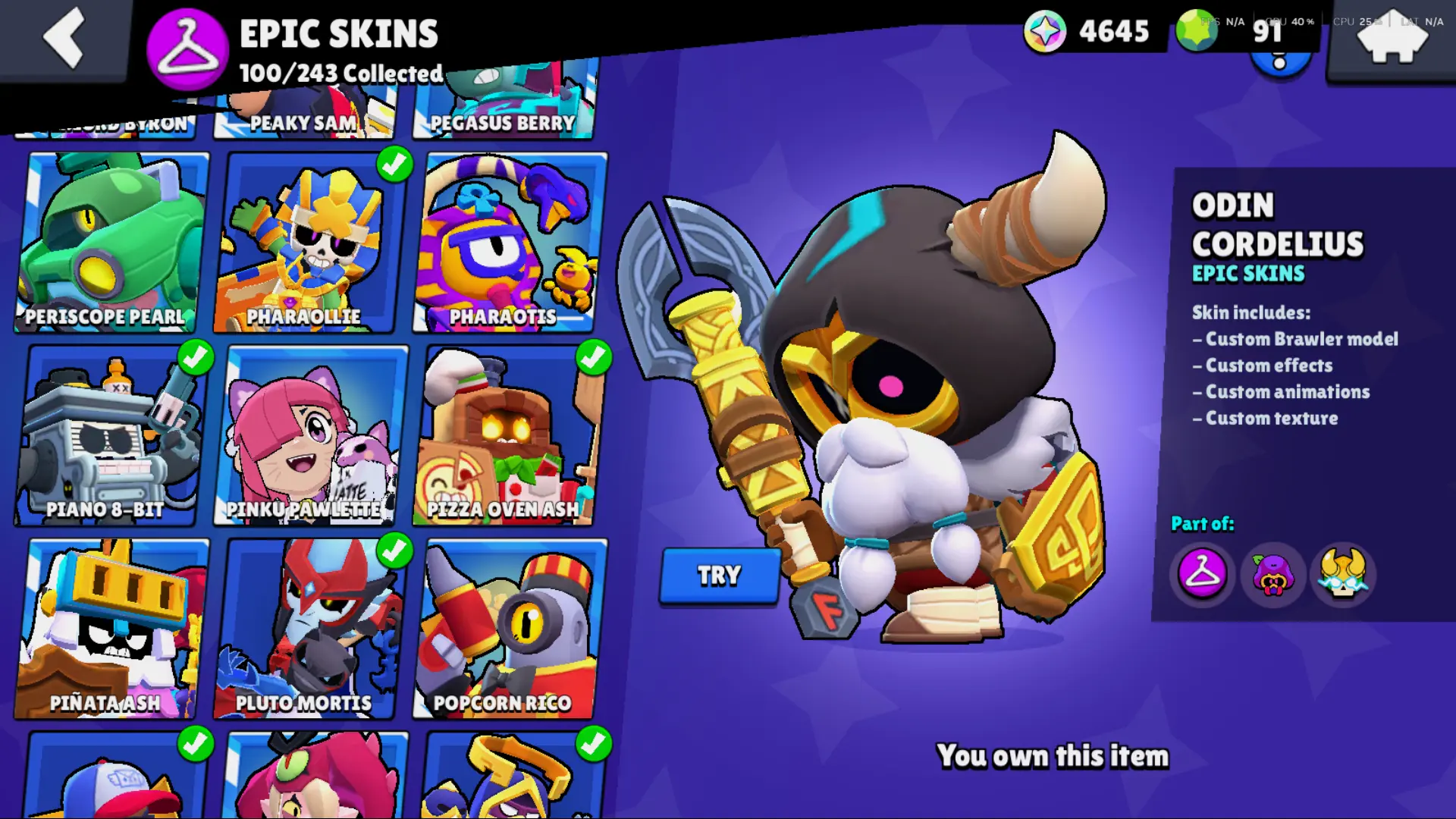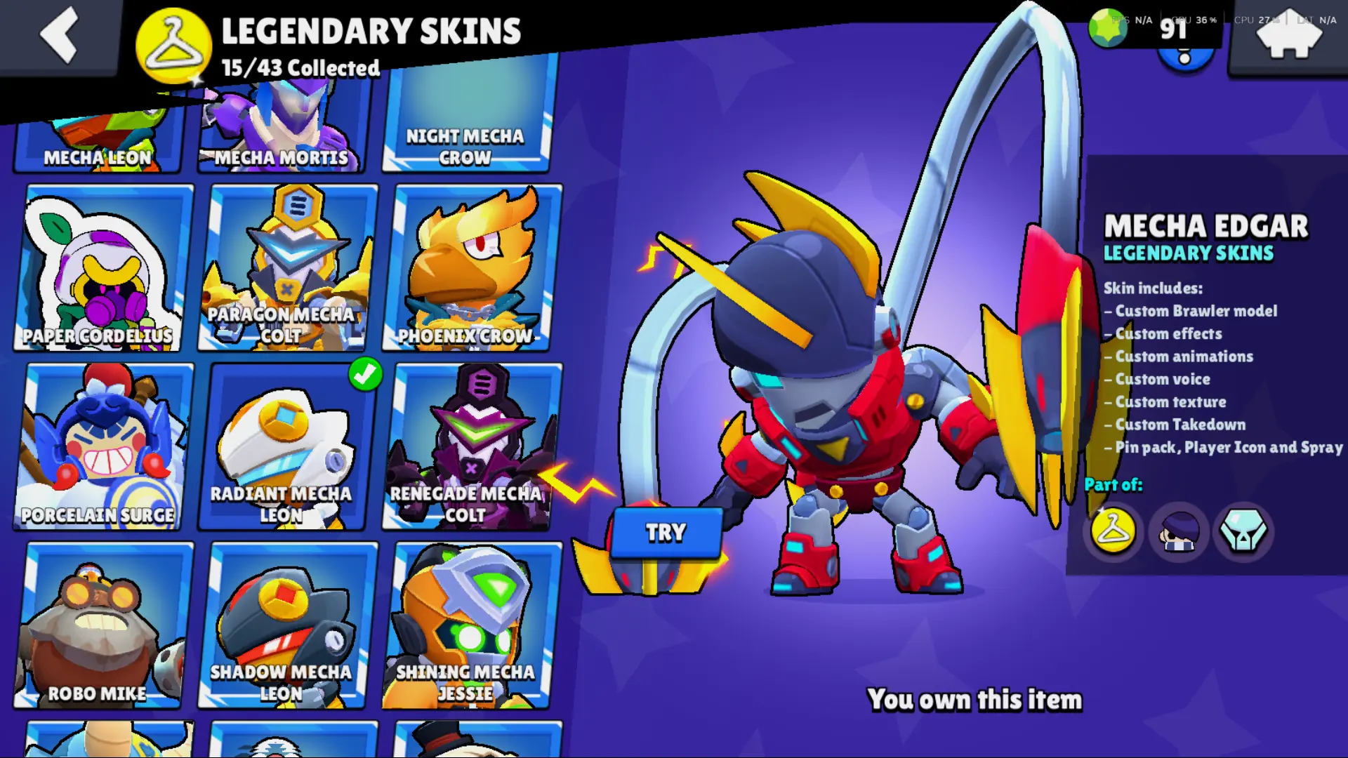 Bs 50k 🔥 PLAYER ID CHANGEABLE . Prestige 2 ✅ COLT PRO PASS . 39 max ✅ 290 skins . 5 brawl pass plus ✅ 69 hypercharges