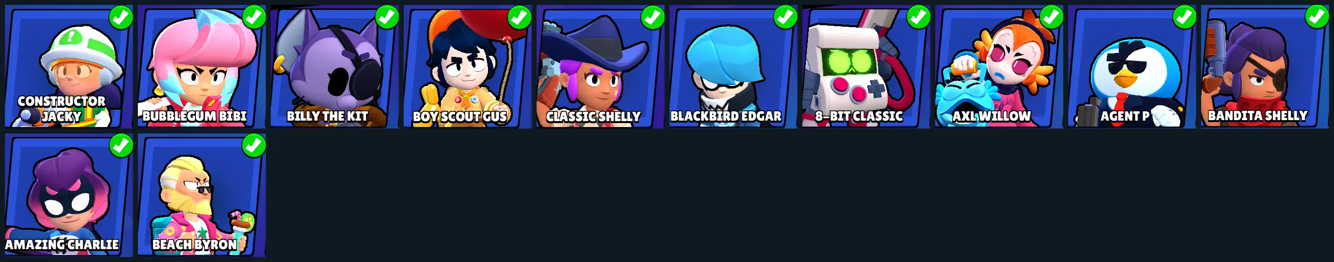 ❤️ GEMS SPENT 14448 ❤️ 172 SKINS ❤️ 8-Bit Classic ❤️ Agent P ❤️ Amazing Charlie ❤️ Amazing Maisie ❤️ Angel Max ❤️ Anti-Hero Skeletal Surge ❤️ Archvillain Bea ❤️ Axl Willow ❤️ Bandita Shelly ❤️ Barbarian King Bull ❤️ Bea Byte ❤️