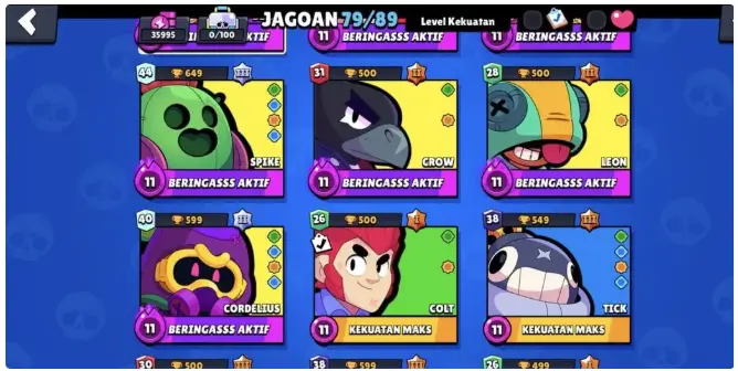 IK613 // Brawl Stars Account with 35K Trophies, 79 Brawlers, 13 Max Power Brawlers, and 10 Hyperchargers
