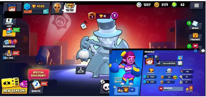 [Old Account] Legend Surge ft Maxed Chester + 28 Brawlers + Many Skins 4585 Trophies