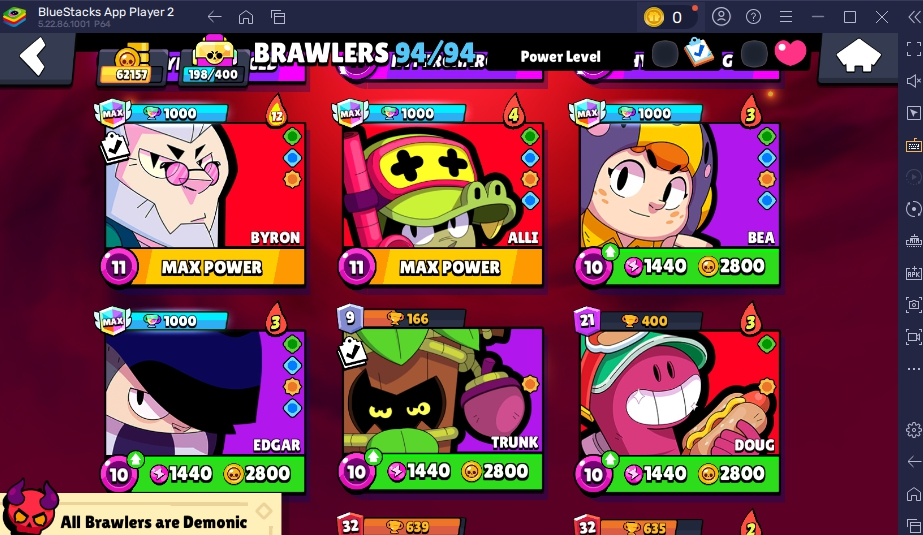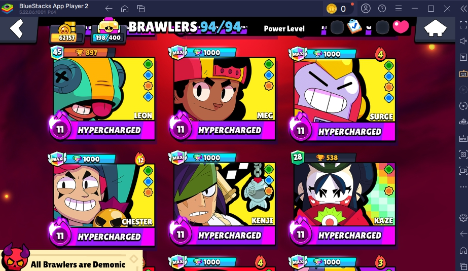 PRO PASS ⭐ 18 TITLES ⭐ 287 SKINS ⭐ 62.100 TROPHY ⭐ 94 BRAWLERS ⭐ 38 MAX ⭐ 36 HYPERCHARGED ⭐ CCTV POCO ⭐ CRASH TEST DARRYL ⭐ FINAL BOSS RICO ⭐ KRAKEN SURGE ⭐ OCTO FANG ⭐ DARK LORD SPIKE ⭐ LEGENDARY ⭐ LEON