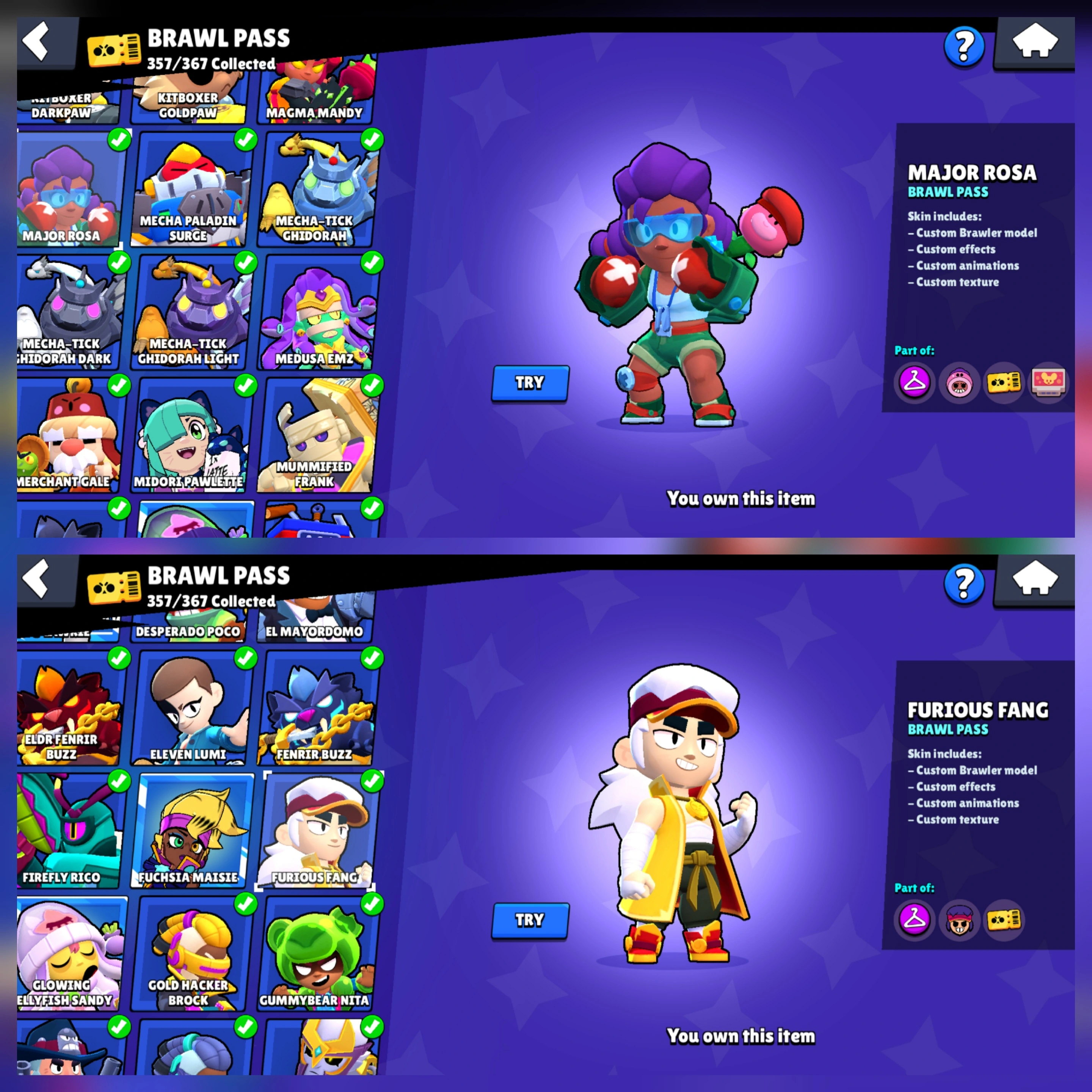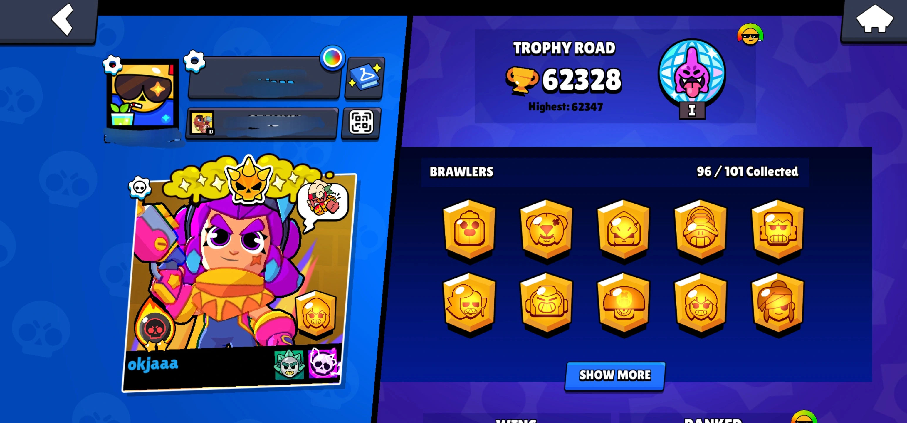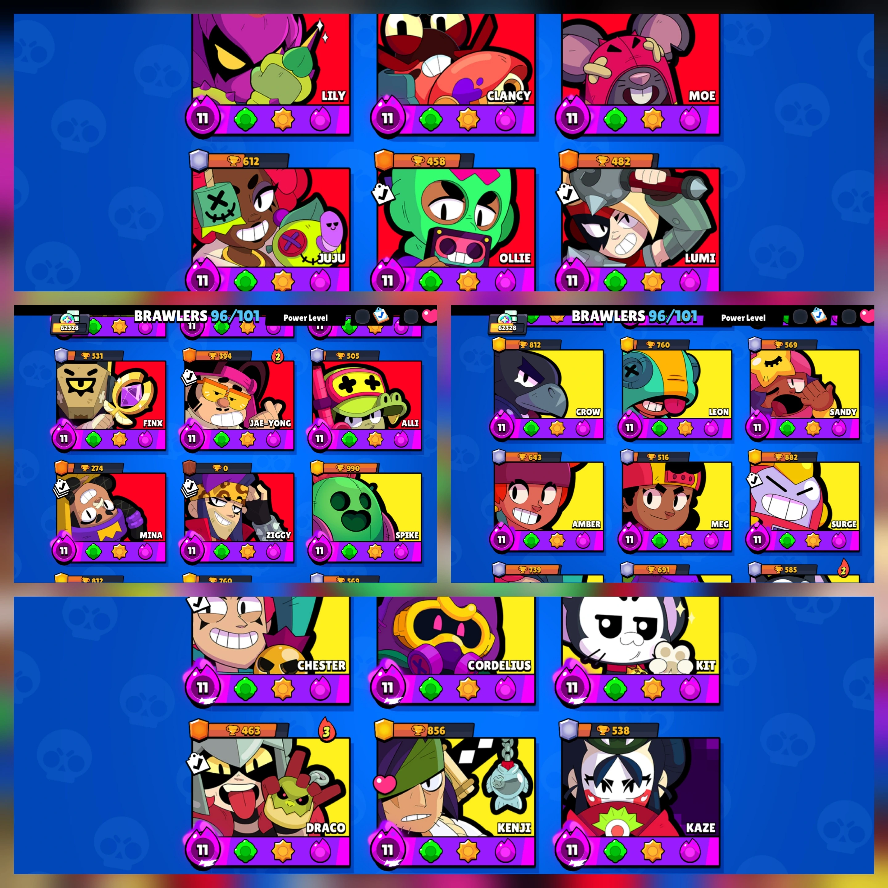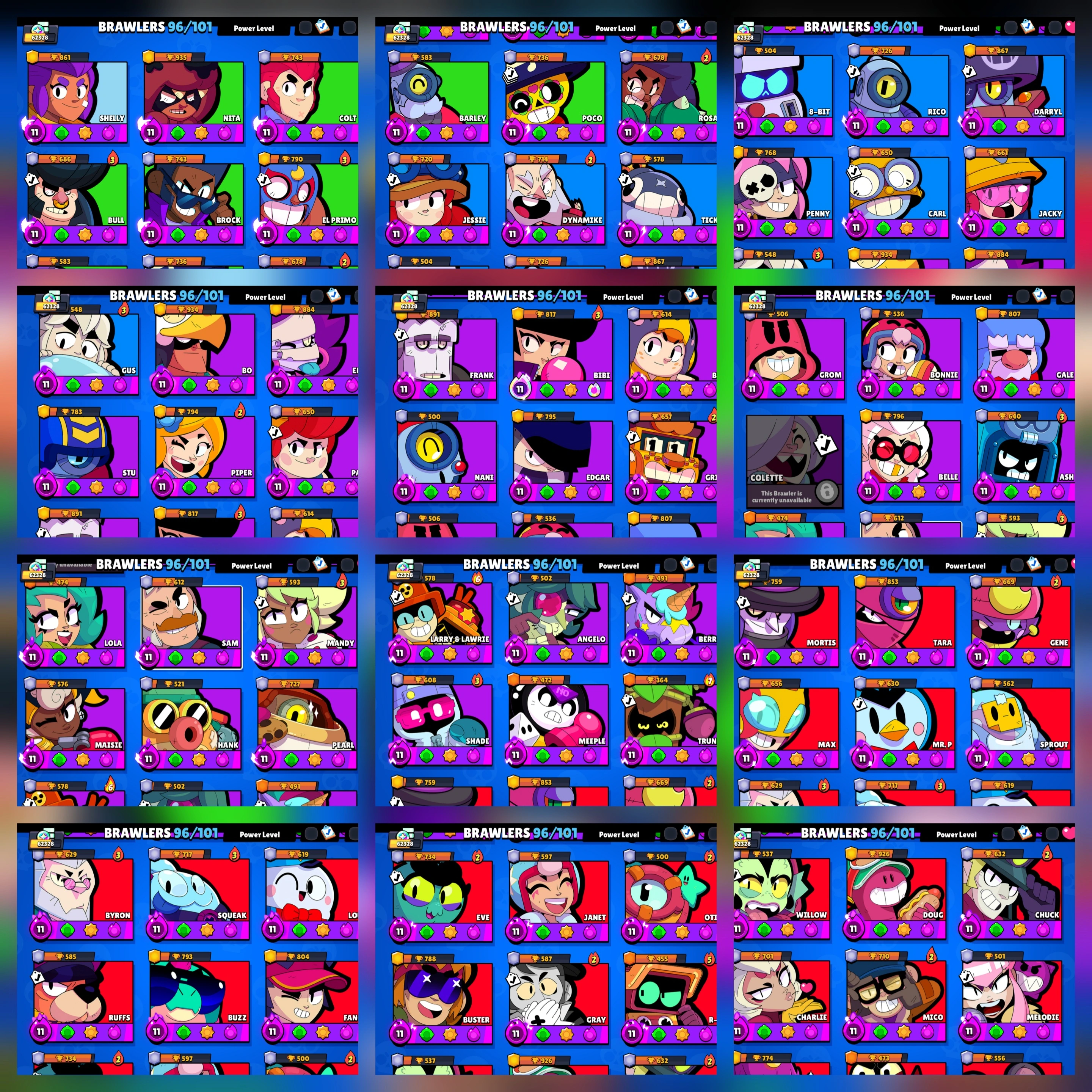 [ RAREST ACCOUNT ] 💥 [ SEASON 1 TO 12 ALL BRAWLER PASS ] 🎉 62000 TROPHY 🏆 96 MAXED BRAWLER 🔥 96 HYPERCHARGED 💥 METEORIC FRAME II 🔥 81K POWER POINTS 💥 MERCHANT GALE 🔥 BLUE AND WHITE WEREWOLF LEON 🔥 TRIXI COLTTE