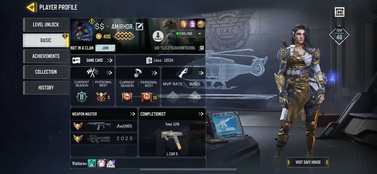 iOS Android 🛍️ level 400 🧩 Rank Legendary 🏆 424 Epic 🧨 9 Legendary 🔆 1 Mytich 🫀 1 Legendary Soldier ☠️ Code560