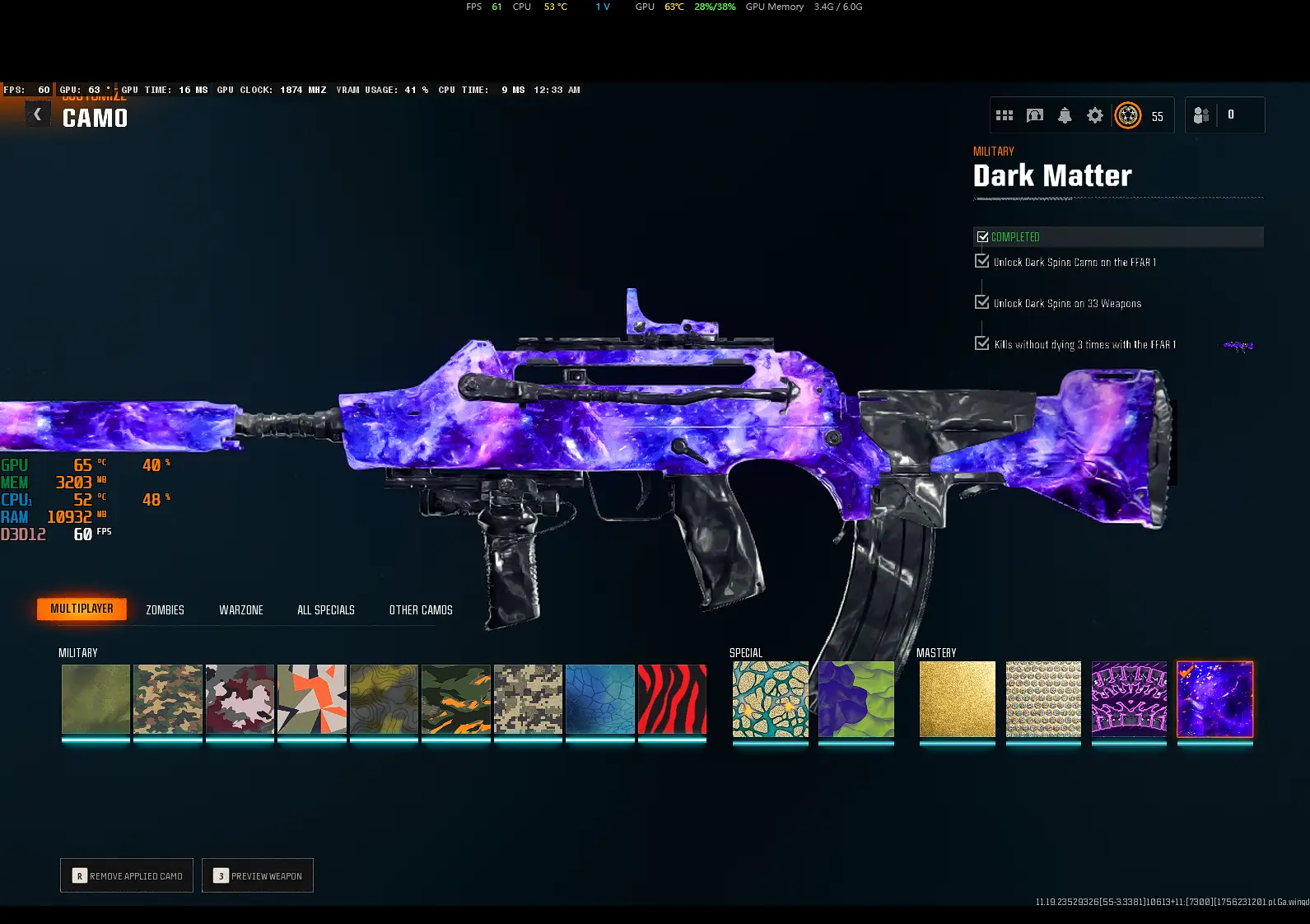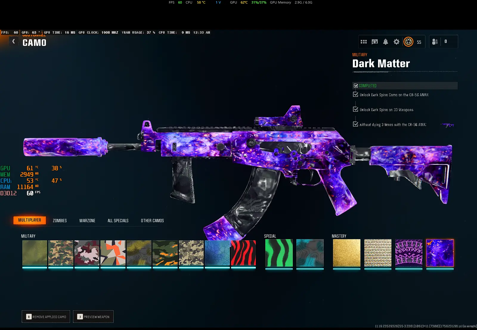 โจ 500 Camos ๐Dark Matter โ๏ธ Ranked Ready ๐๏ธ Prestige 1 ๐ 50 Wins ๐ฅ 17 Operators ๐ Linkable: Steam / Battle.net / PSN / Xbox ๐ฎ BO6