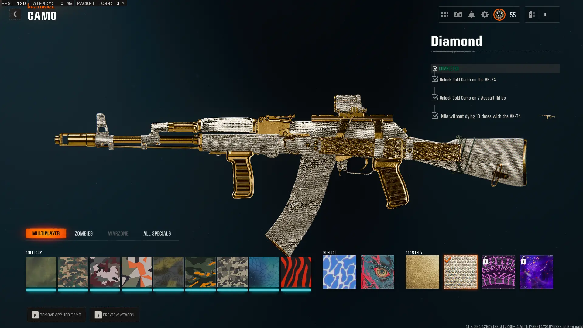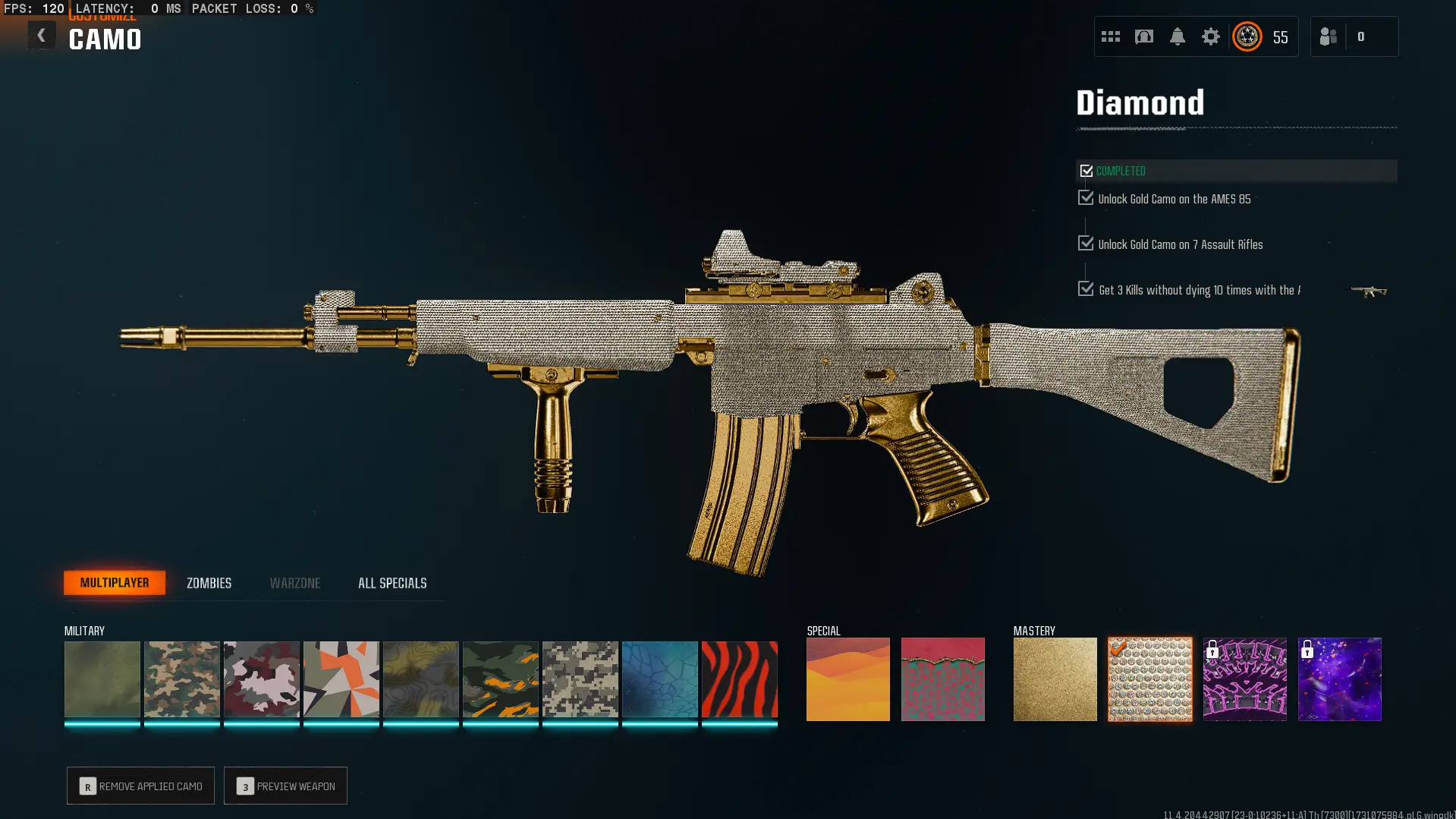 7 Diamond Camos ๐ 91 Camos ๐๏ธ50 wins ๐๏ธ 7 Gold ๐ฅ Level 55 ๐๏ธ 17 Operators ๐ฅ BO6 + WZ4 ๐ฎ ๐ Linkable: Steam ๐ป Battle.net ๐ PSN ๐ฎ Xbox ๐ฎ #as9dk1jwe
