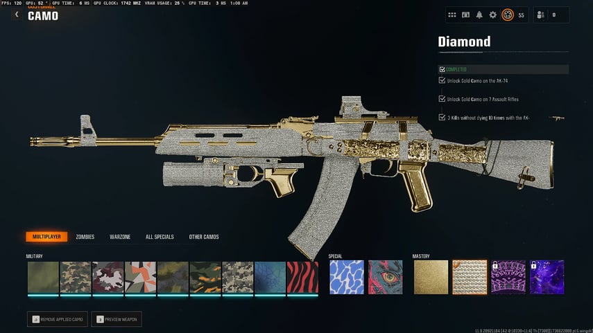 BO6 & WZ4 ๐งฒ { Prestige Master} ๐งฒ Dark Matter x Nebula โจ +1000 Camos Unlocked โจ 17 Operators โจAll MP & Z Camos Unlocked โจ Prestige Master โจ Linkable to: Steam, Battle.net, PSN, Xbox โจ Black Ops 6 ๐ฎ Warzone 4