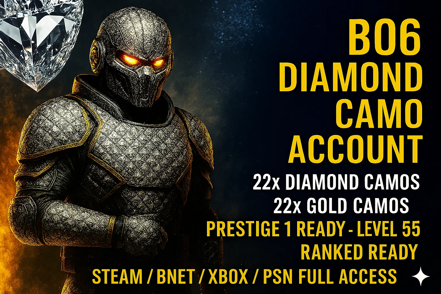 ๐ BO6 Diamond Camo Account โ 20x Diamond Camos + 20x Gold Camo ๐ฅ | Prestige 1 Ready โ Level 55 ๐ | โ Ranked Ready | ๐ฎ Steam / BNET / Xbox / PSN Full Access | #LI-RECT4
