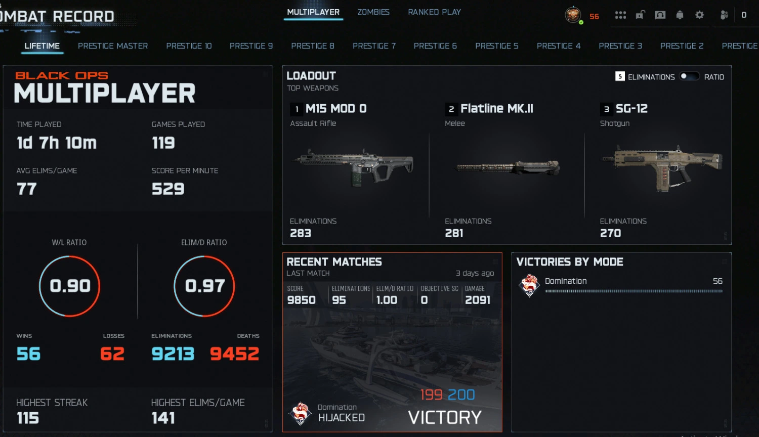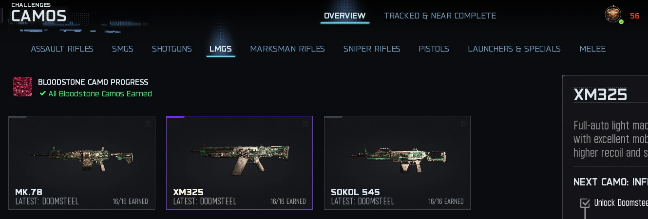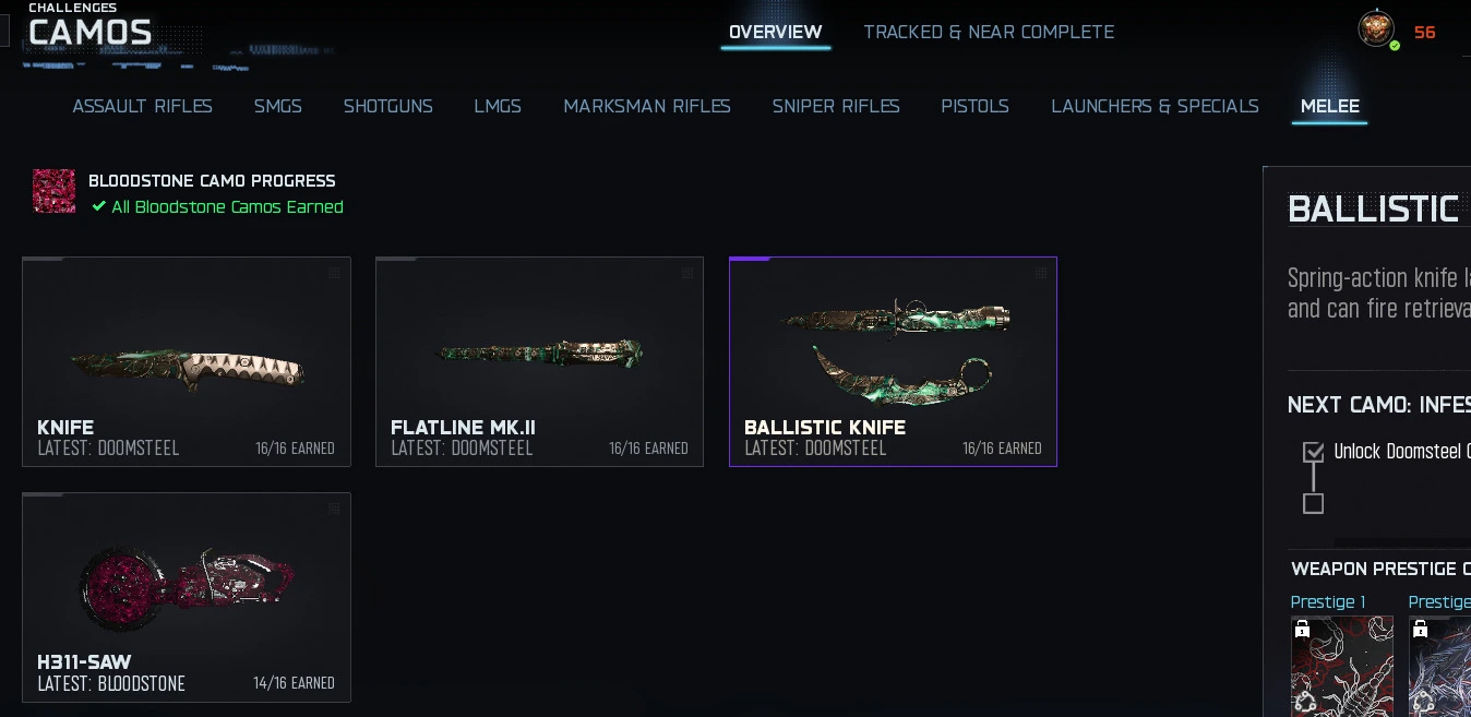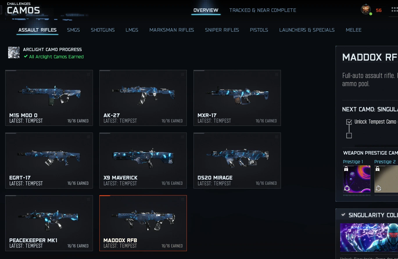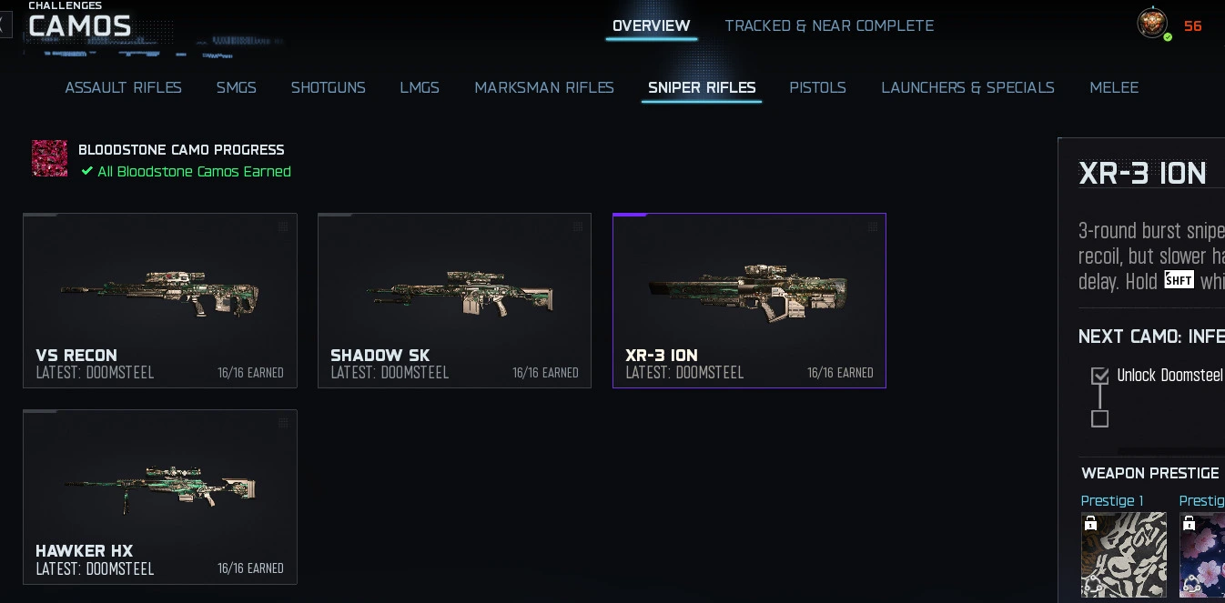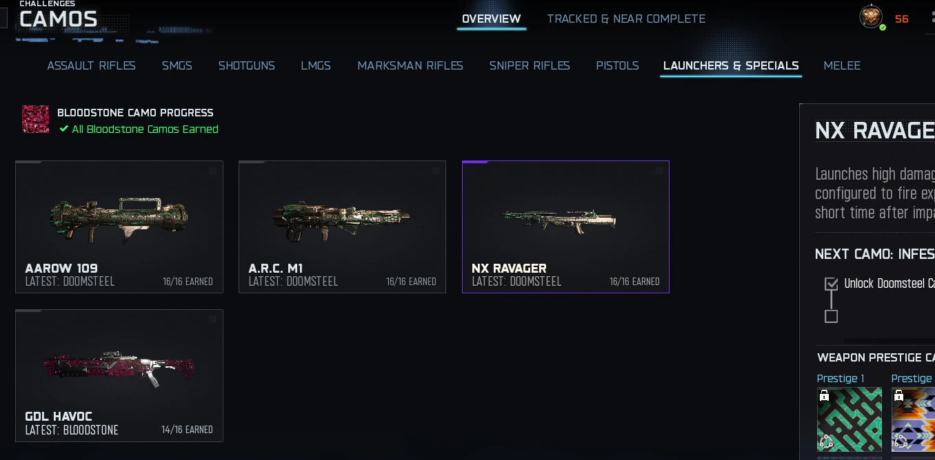 🔥 BO7 🎮 Prestige Master Level 56 🏆 42 Singularity ✨ 38 Infestation Camos 🧬 4 Bloodstone Camo 💎 42 Guns Maxed 🎯 1336 Total Camos 📊 Battle Pass Max ⭐ Ranked Ready ⚔️