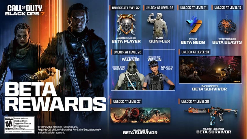All 9 Beta Rewards Unlocked โข ๐ญ 2x Operator Skins โข ๐งฉ Emblem โข ๐ฏ Emote โข ๐ Sticker โข ๐ชถ Charm โข ๐ Loading Screen โข ๐ Calling Card โข ๐ซ M15 MODโ0 Blueprint โข โ Linkable to Steam / BattleNet / Xbox / PSN #BO7Beta