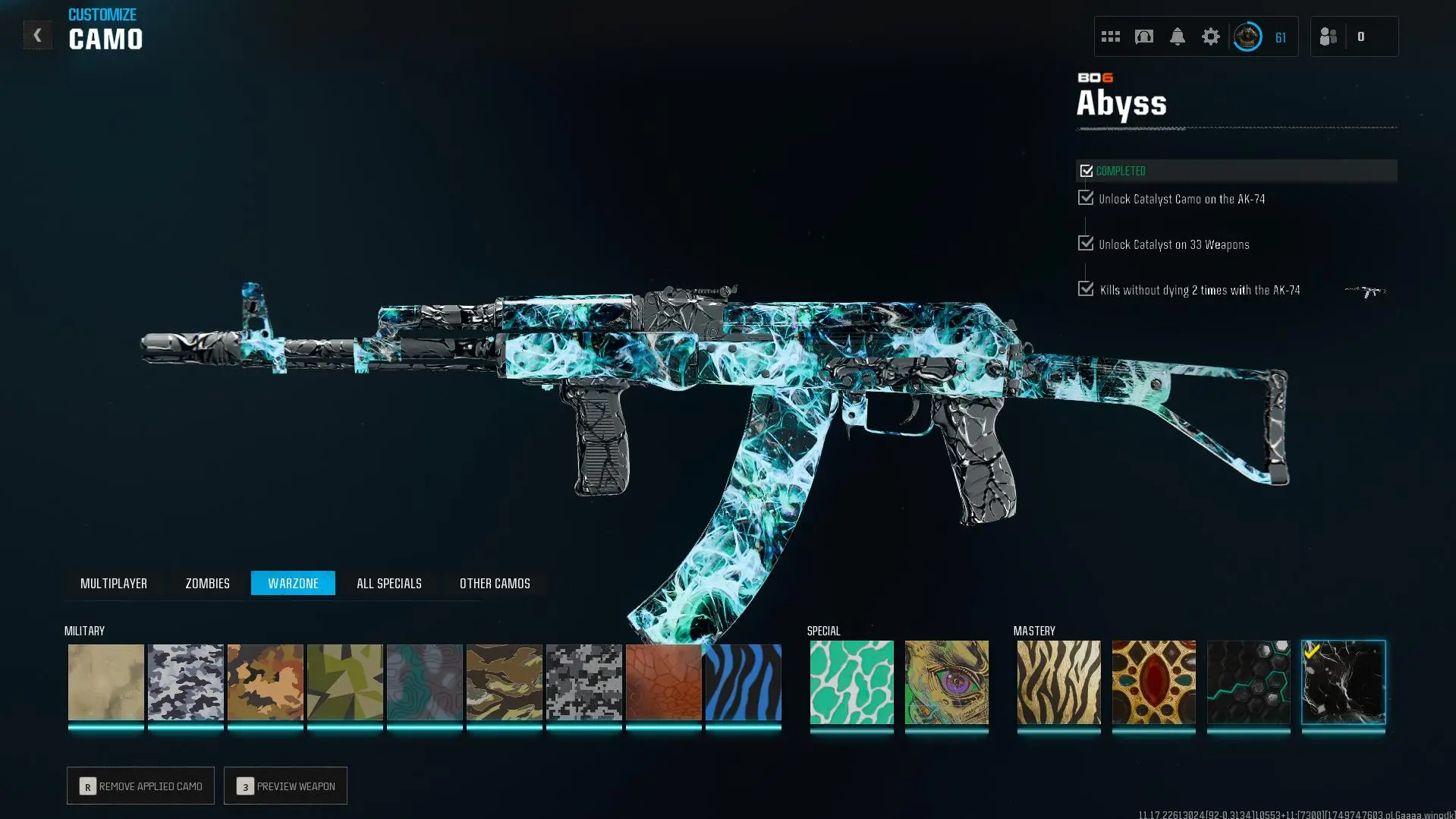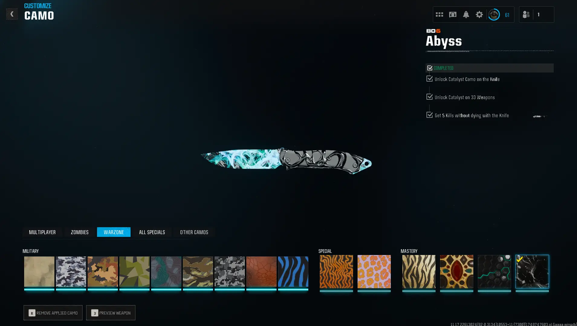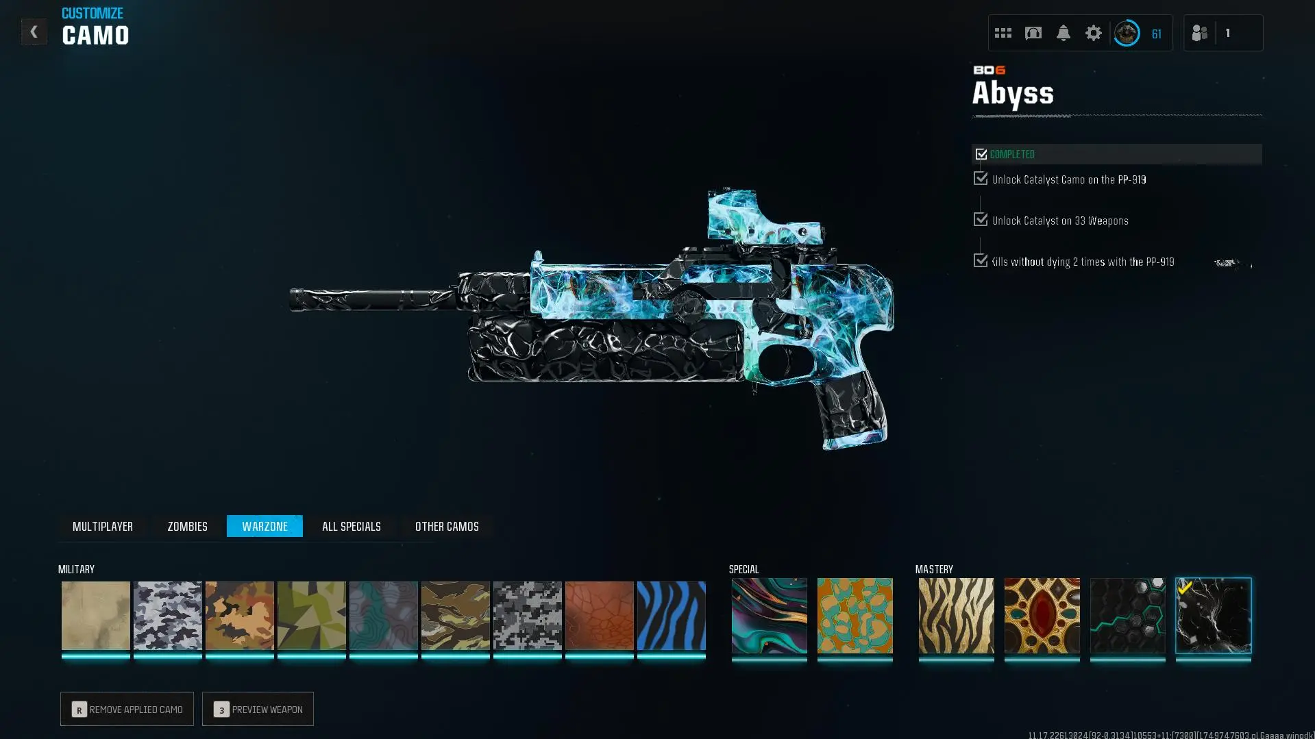 Prestige Master lvl 55 🎖️ Abyss 🔷 555 Camos 🗡️ Wz4 🟦 OPS 🛡️ Handmade 👥 Full Access 🔑 Linkable to: Steam, Battle.net, PSN, Xbox