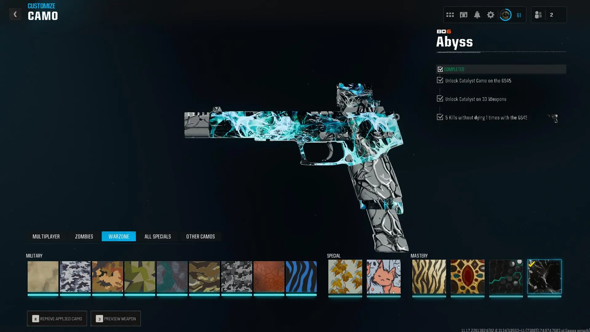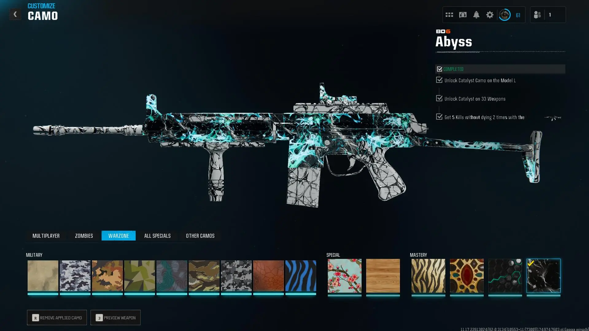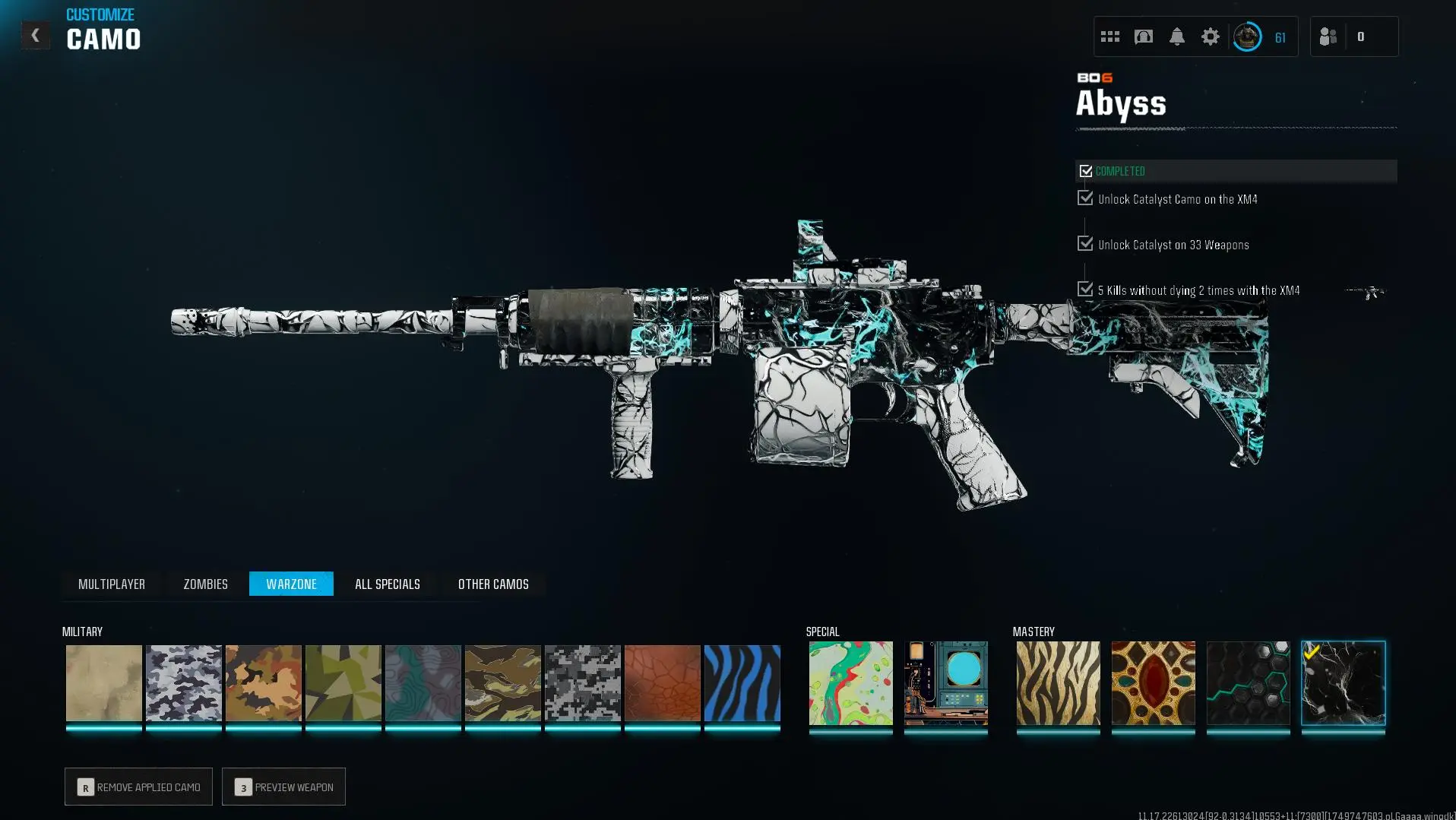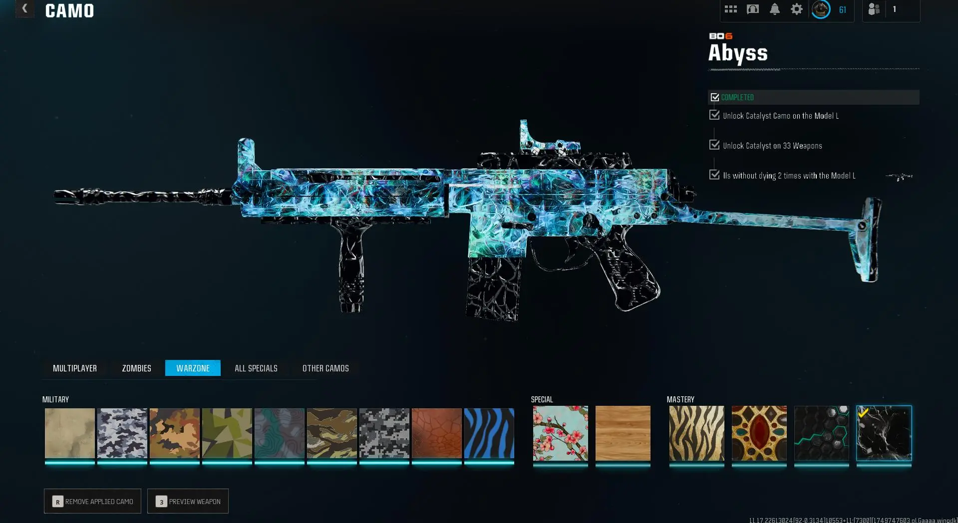 Prestige Master lvl 55 🎖️ Abyss 🔷 555 Camos 🗡️ Wz4 🟦 OPS 🛡️ Handmade 👥 Full Access 🔑 Linkable to: Steam, Battle.net, PSN, Xbox