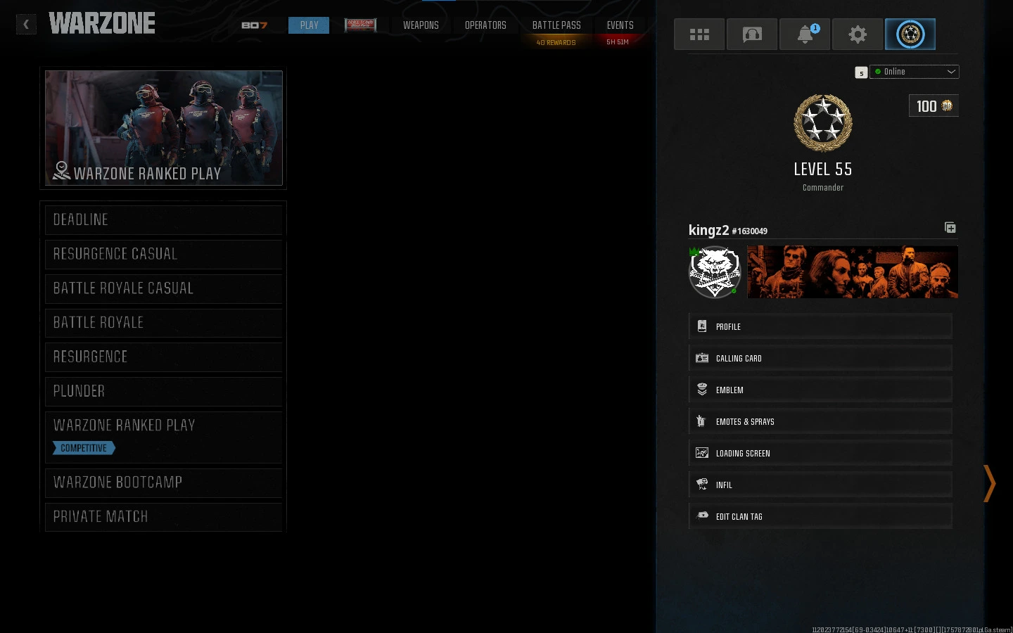 ✨[Warzone 4-Level 55 ]-4 Maxed Guns [Meta Guns] | 🎮 Ready For Rank | 🟣 Hand Leveled | 🟥 Name Changeable | 🎯 Instant | 🌐 Linkable to All Platforms | 🔓 Full Access