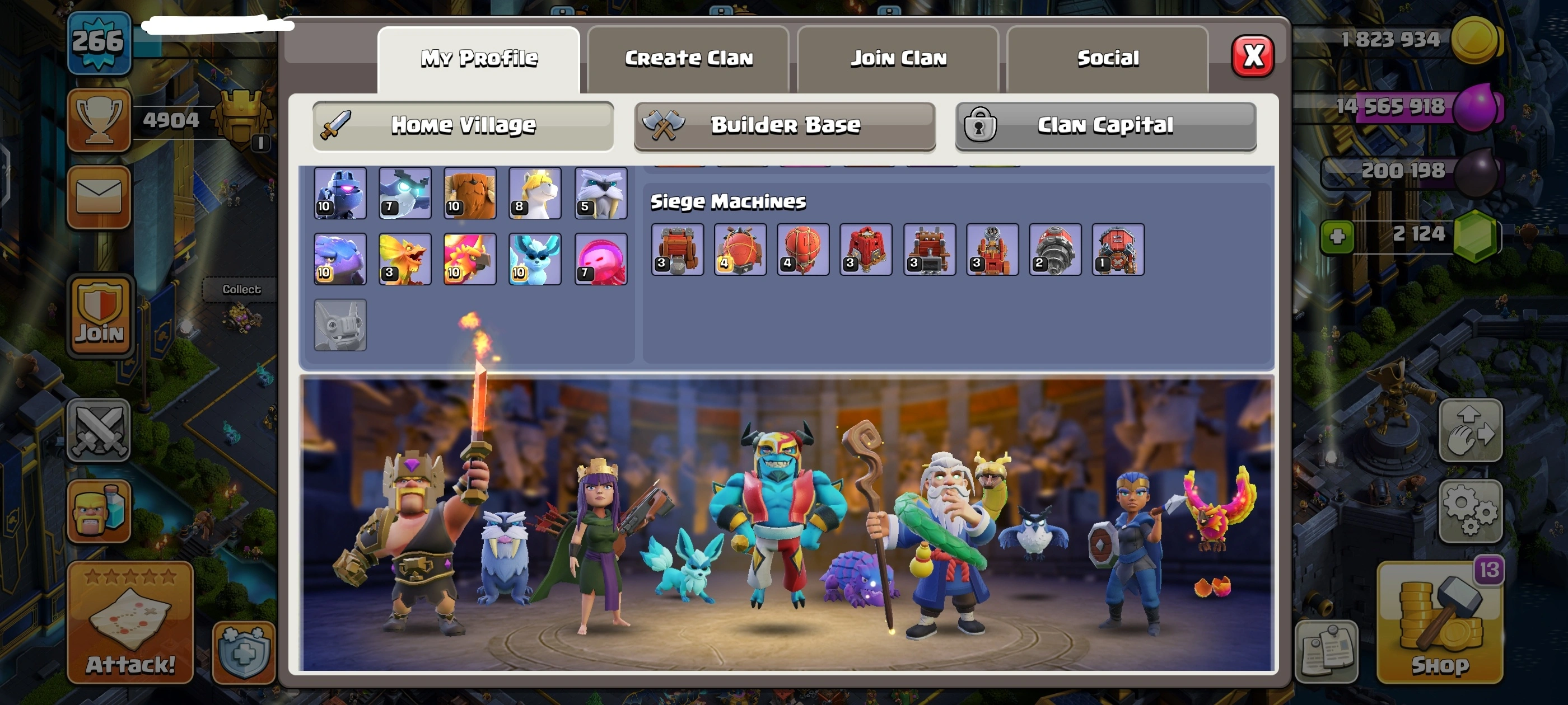 10 Epic Equipment's bro 😱 With 5 Near max , Two scenery's , TH 17 Max 🔥 , 1752 War Stars 😉 : Heroes 77-95-56-57--37 , 10 Hero Skins 🌹 , 266 Xp level 💪 | Both Android and iOS | Instant Delivery 🚚