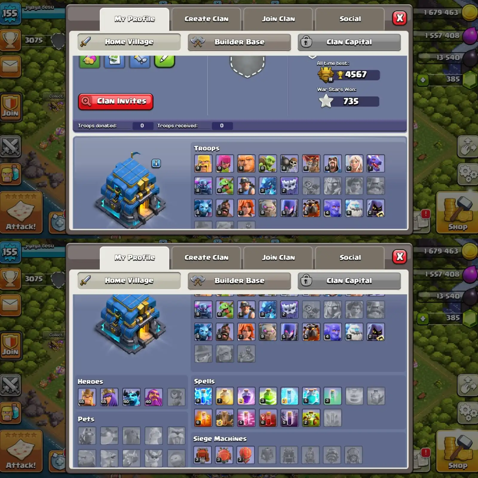 ✨ 100% Max Epic Equipments ✨ Th12 Max ✨ No Upgrade Left ✨ NC Free ✨ 5X Skins ✨ Hero:65-65-40-40 ✨ Huge M.Items ✨ XP-155 ✨