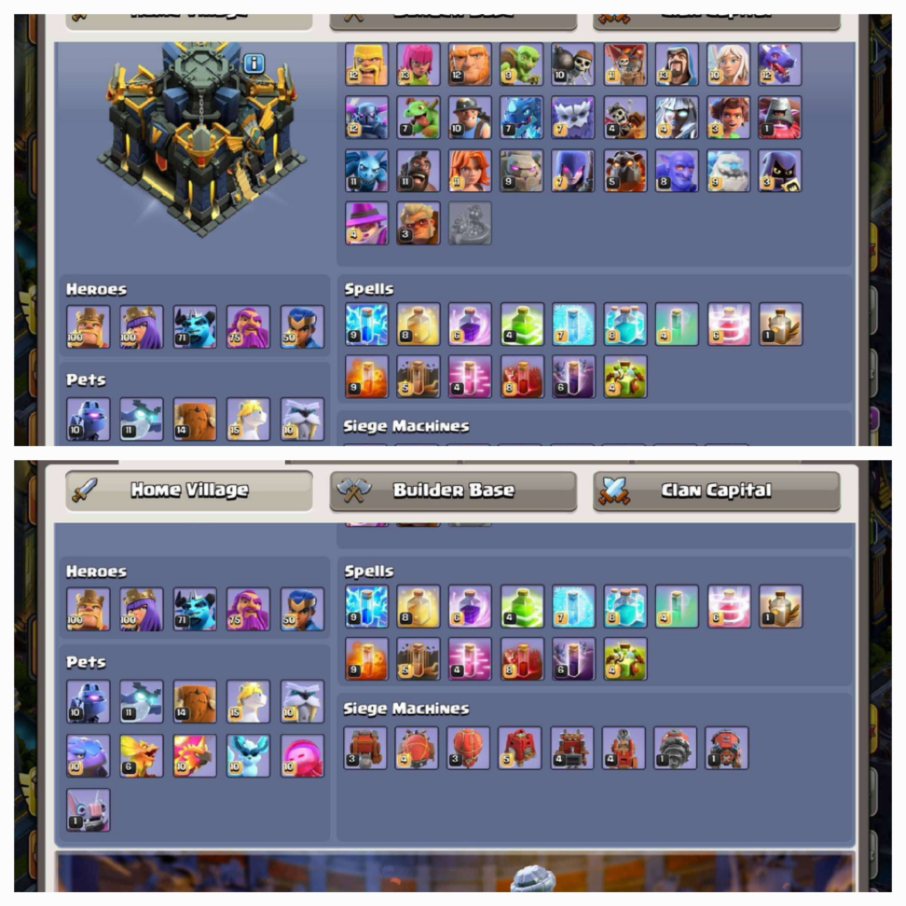 All Equipments [ 6 Epic Max ] π TH 17 Both Base Max β‘ 4 Heros Max :-100-100-71-75-50 ποΈAndroid / Ios π Full Access & Guaranteed π221 Xp π Instant Delivery π