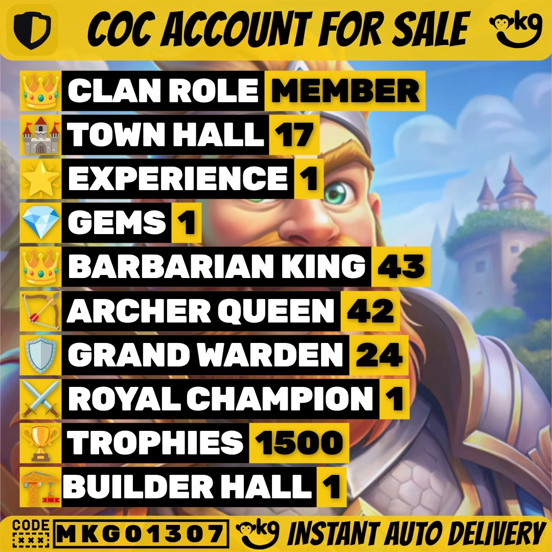 🔥 TH17 Donation Type | ⚔️ 5 Epic Equipments Loaded (GG, SB, MM, FB, EB) 🥶 | 🦸 Heroes 43-45-42-34-24 🫡 | 💪 1.5K+ Raid Medals | ✨ Free Rename | 👑 Rogue King Skin | 🚚 Instant Delivery ✅ Trusted Seller !MKG01307