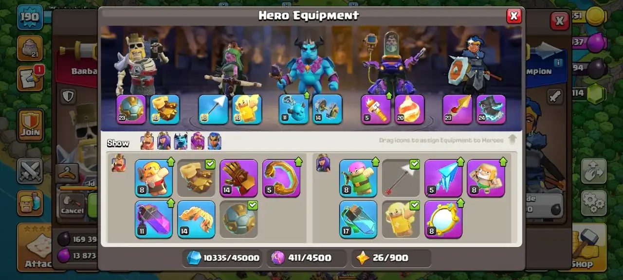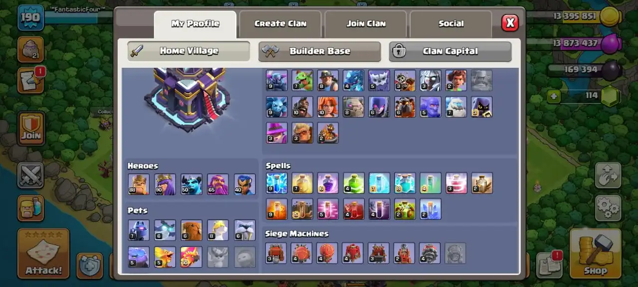 Big sale🔥TH 15 max defense🔥high heroes level 88/90/50/65/40☠️11 epic equipment⚒️6 builder’s✅7 heroes skin