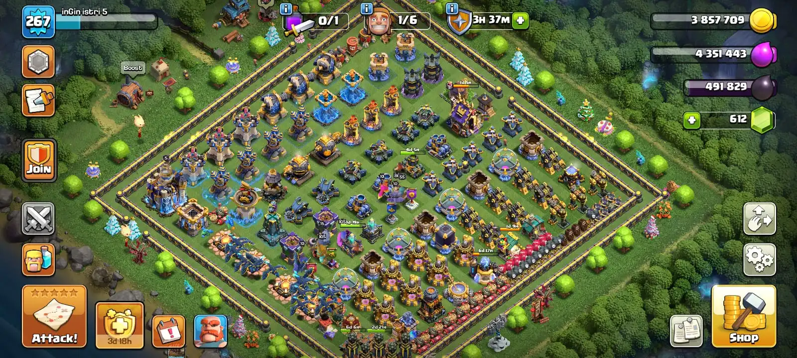 Big sale✅TH 18 almoast max🔥max heroes🔥max pets🔥max guardians☠️4 max epic equipment⚒️6 builder’s✅9 heroes skin
