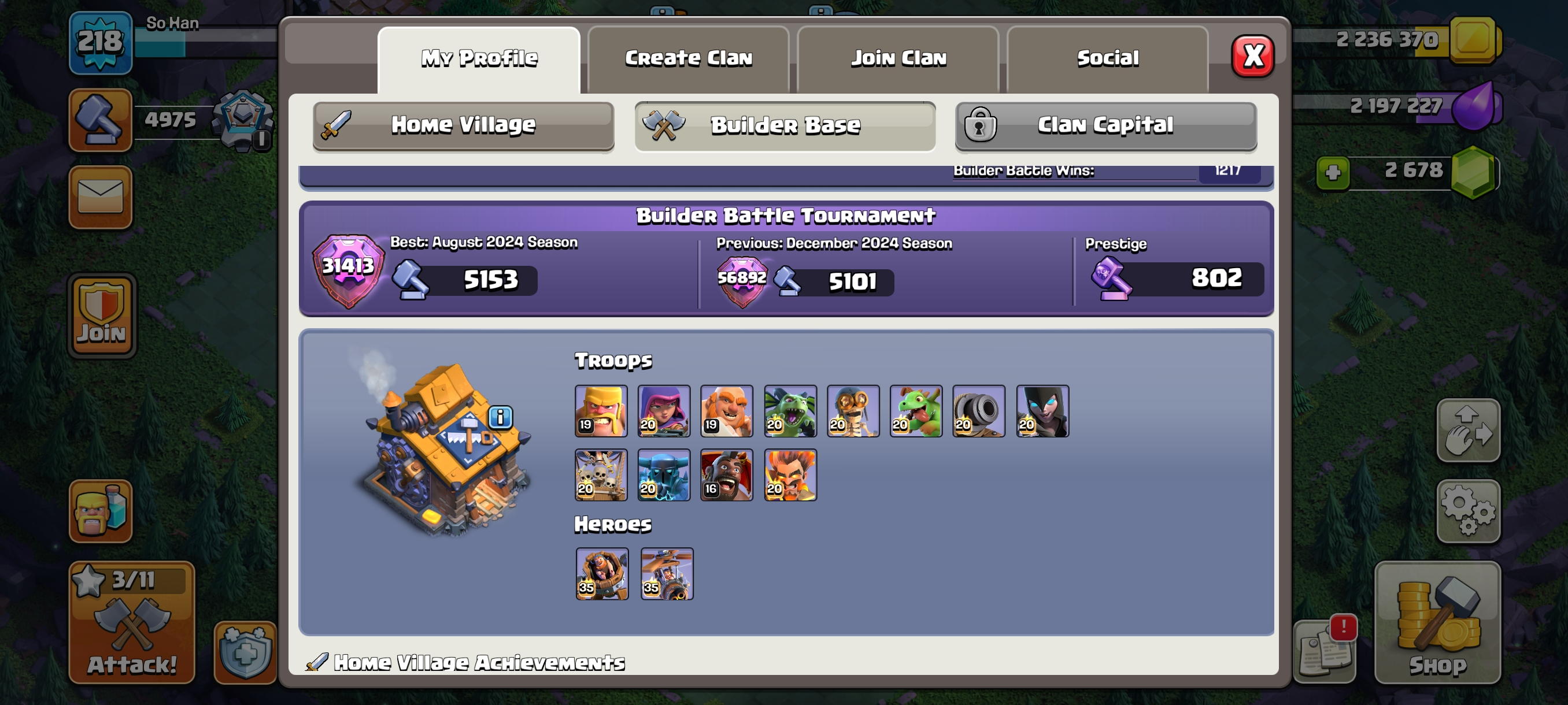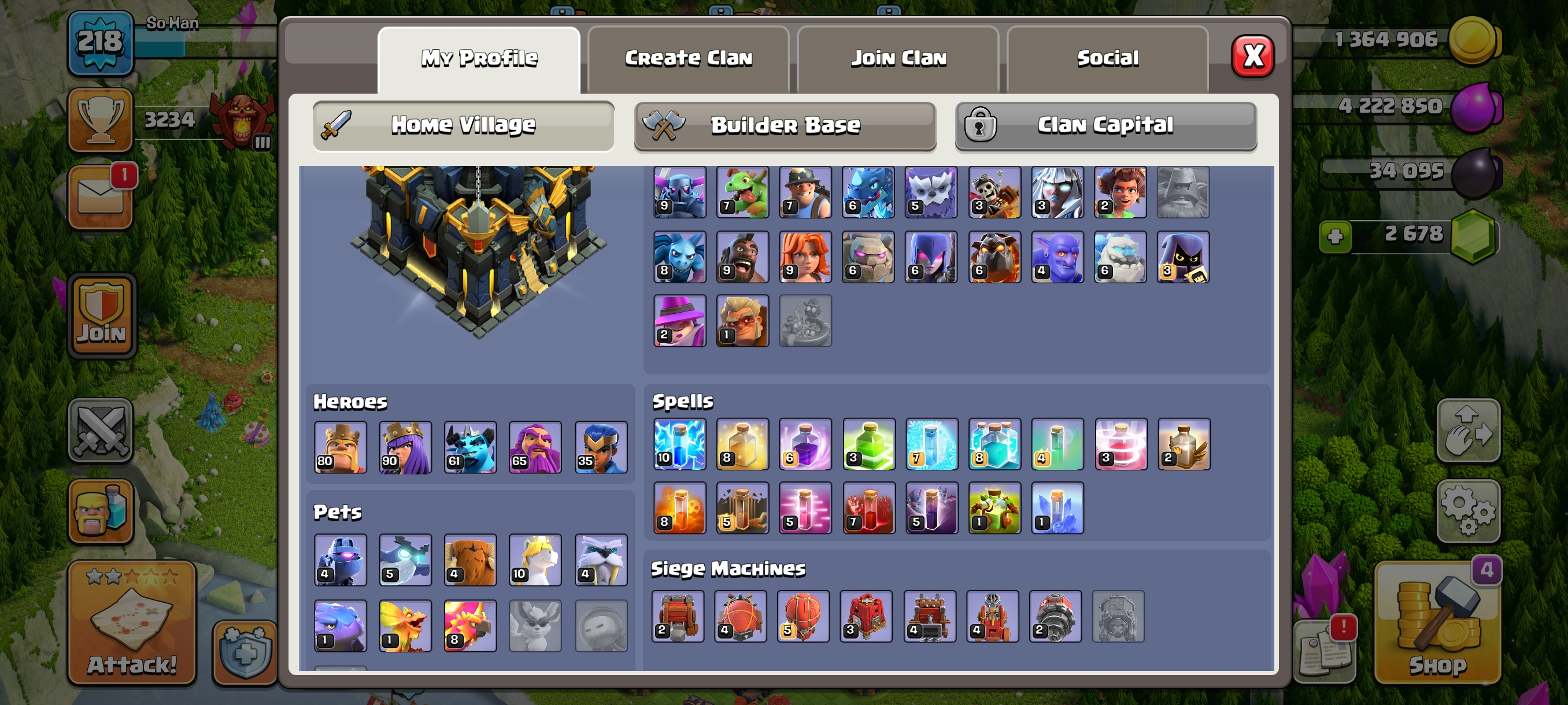 Builder Hall Full Max-7X Epic High-Th17 Same Max-Hero 80-90-61-65-35-Xp218-7X Skin-Wall Defense High-Nc 1000-Full Access