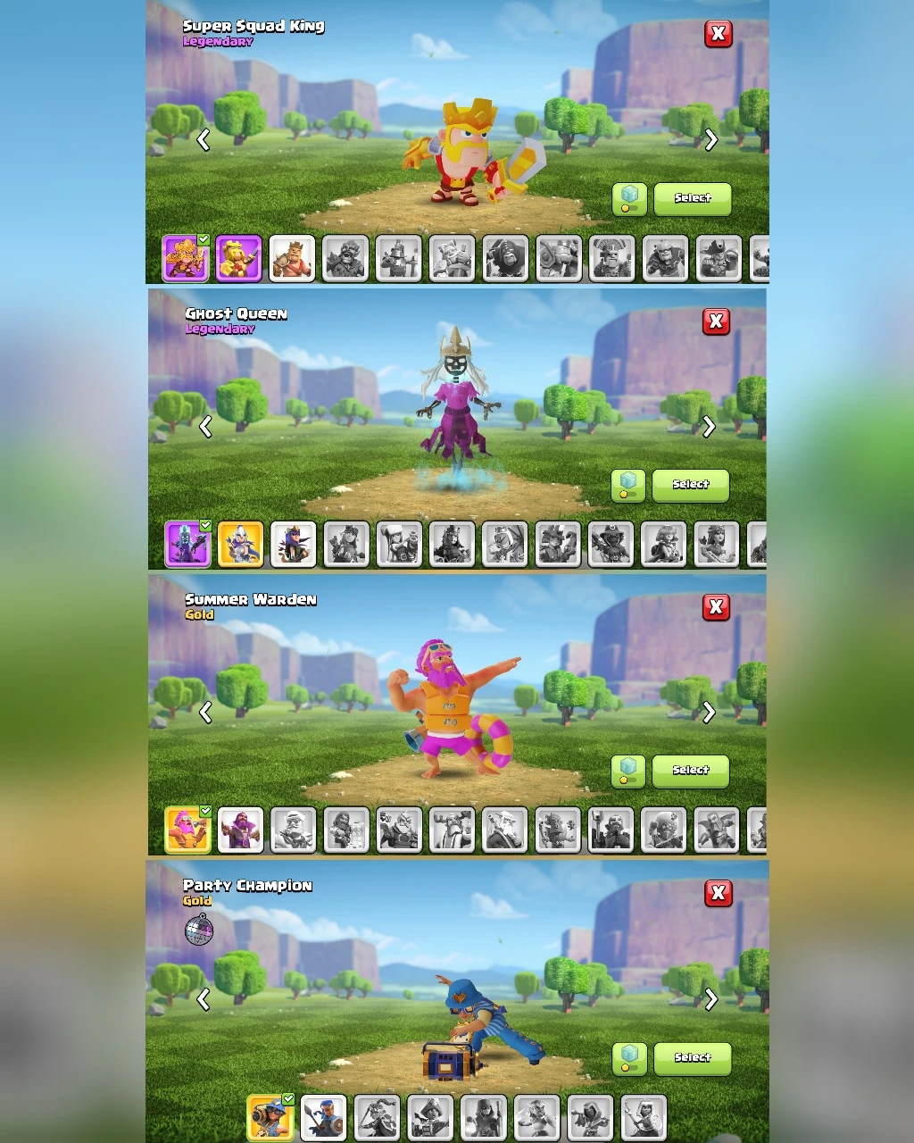 C021 TH13 ⸱ XP196 ⸱ 299 GEMS -CN 0 GEMS ⸱ BK58 SKIN2 PIXEL, SUPER SQUAD-AQ59 SKIN2 GHOST QUEEN FA10-GW48 SKIN SUMMER WARDEN FB11